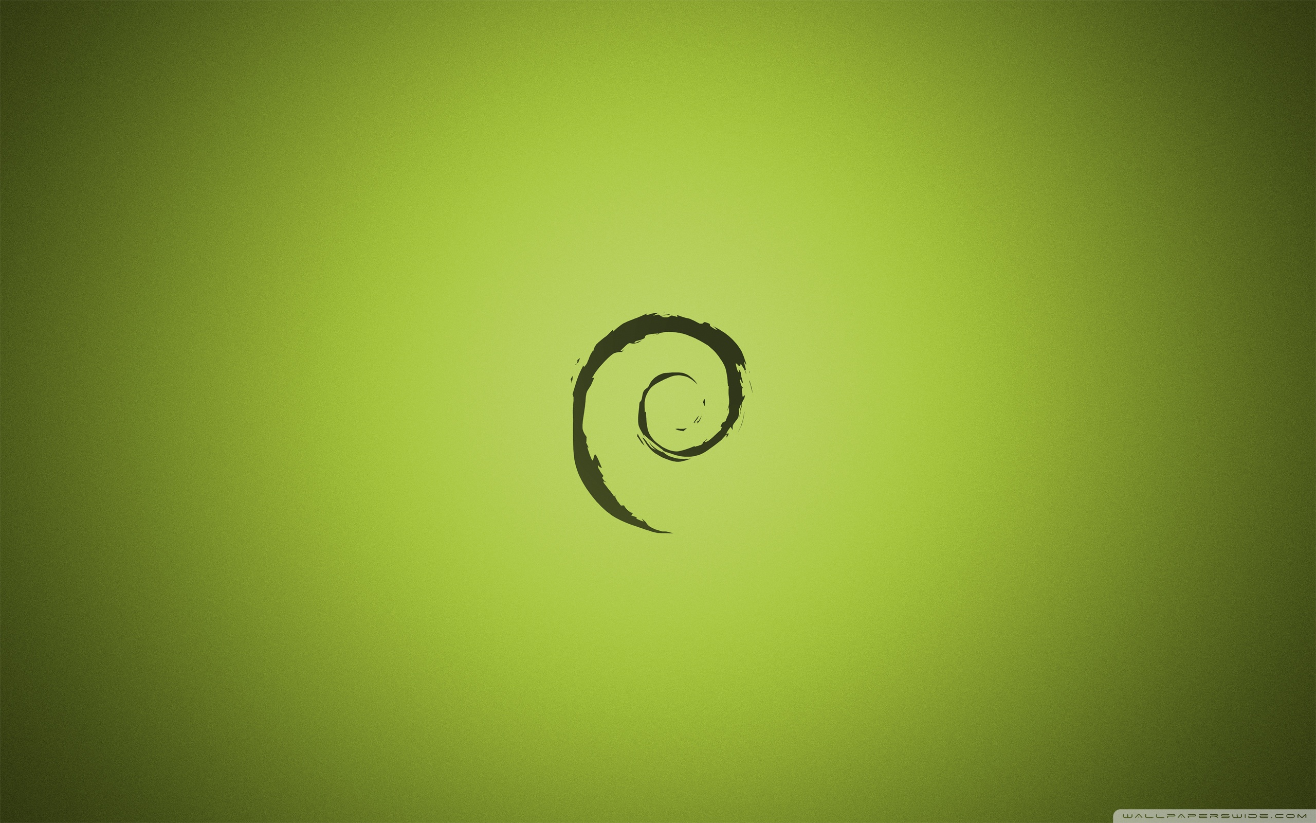 Description: A green background with a black spiral design on it's side and a black circle on the bottom of the image.