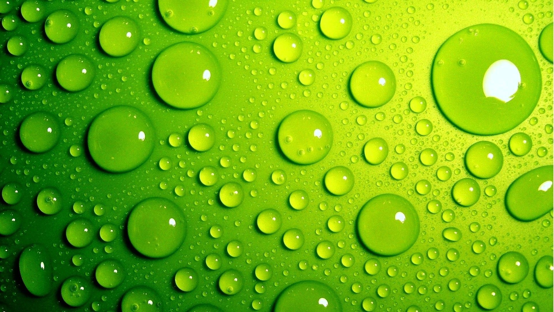 Description: A close up of a green background with water drops on it and a white background with a white border.