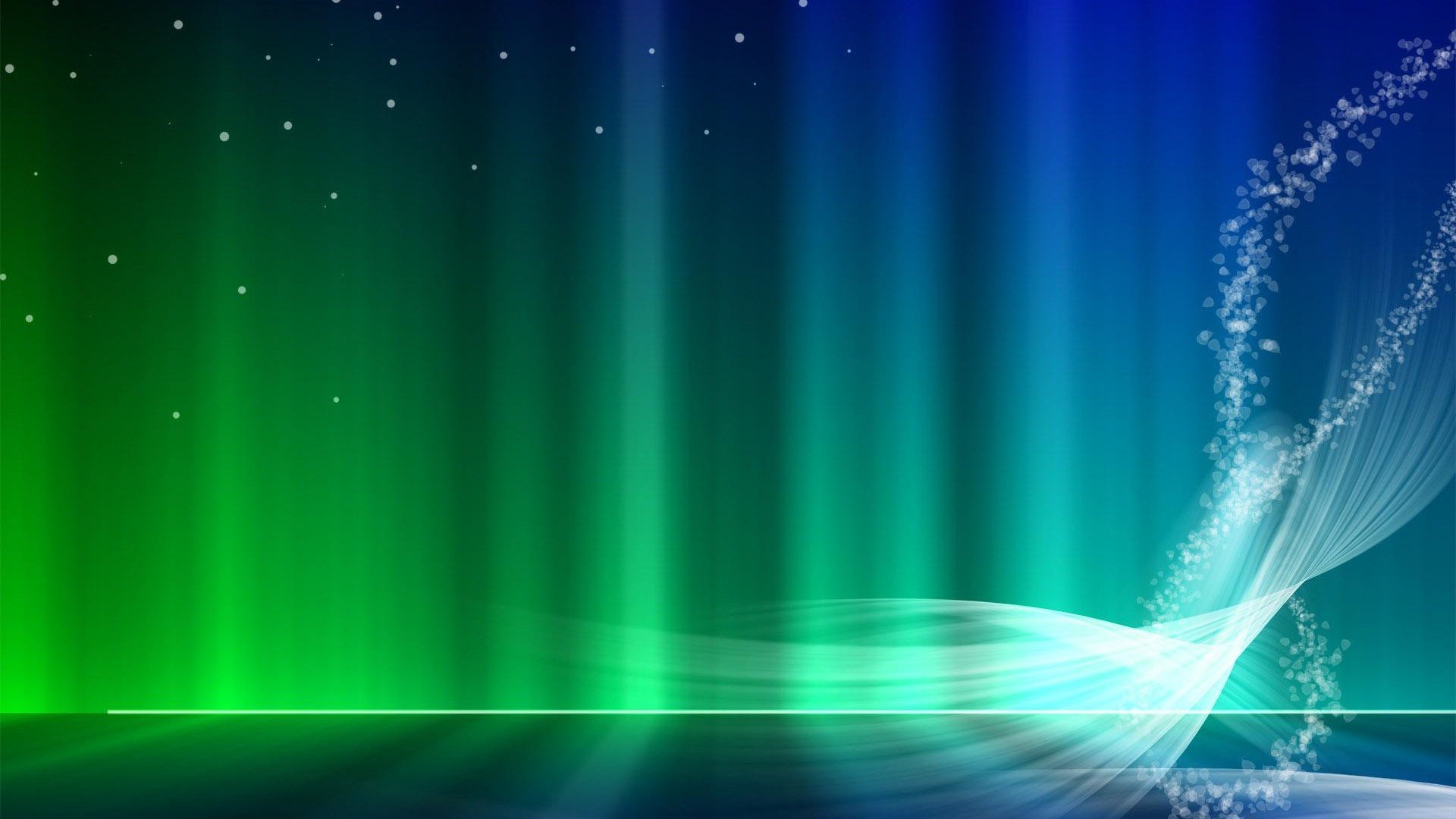 Description: A green and blue background with stars and a wave of light in the middle of the image and a blue sky with stars and a green and blue background.