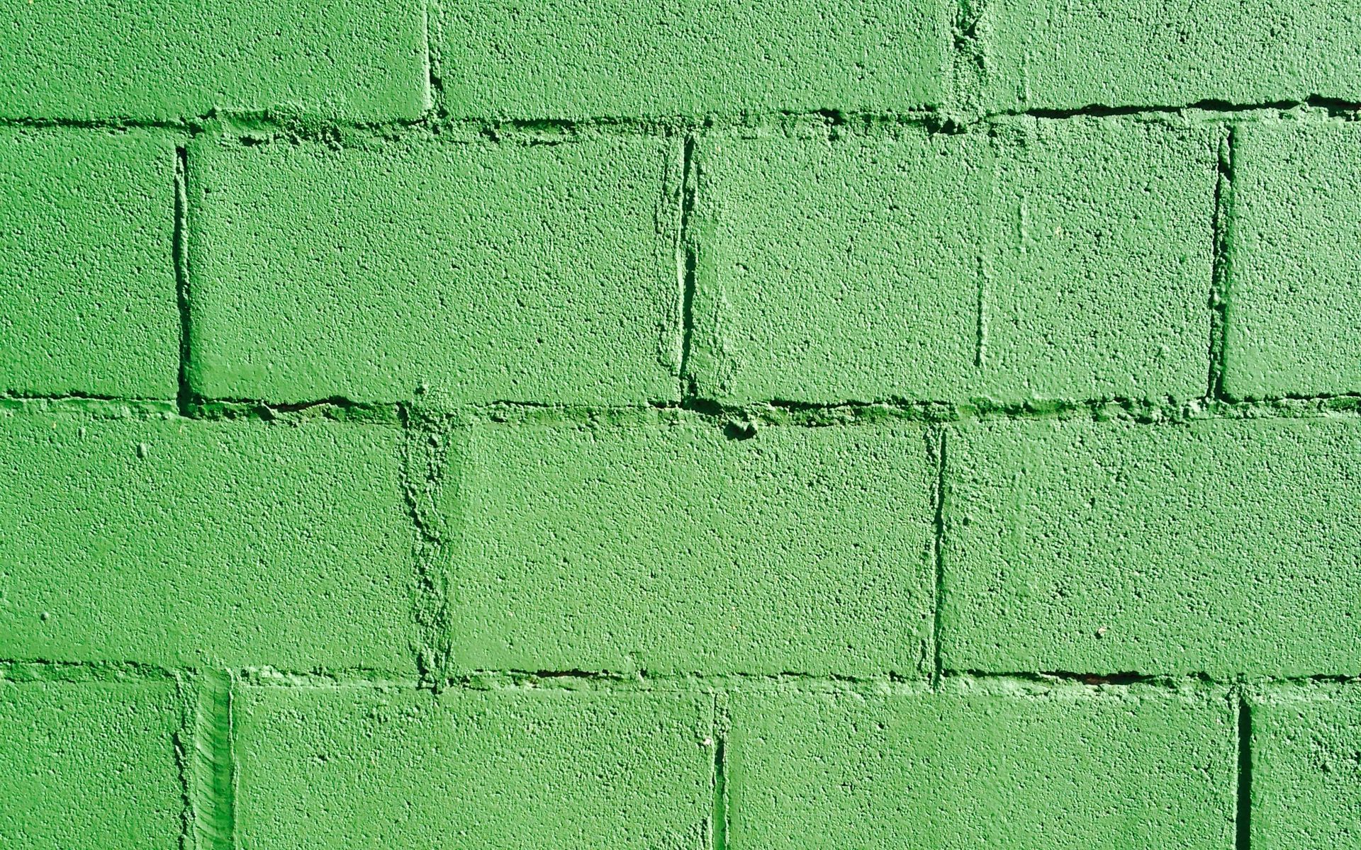Description: A green brick wall with a white background and a white vase with flowers in it and a white vase with flowers in it.