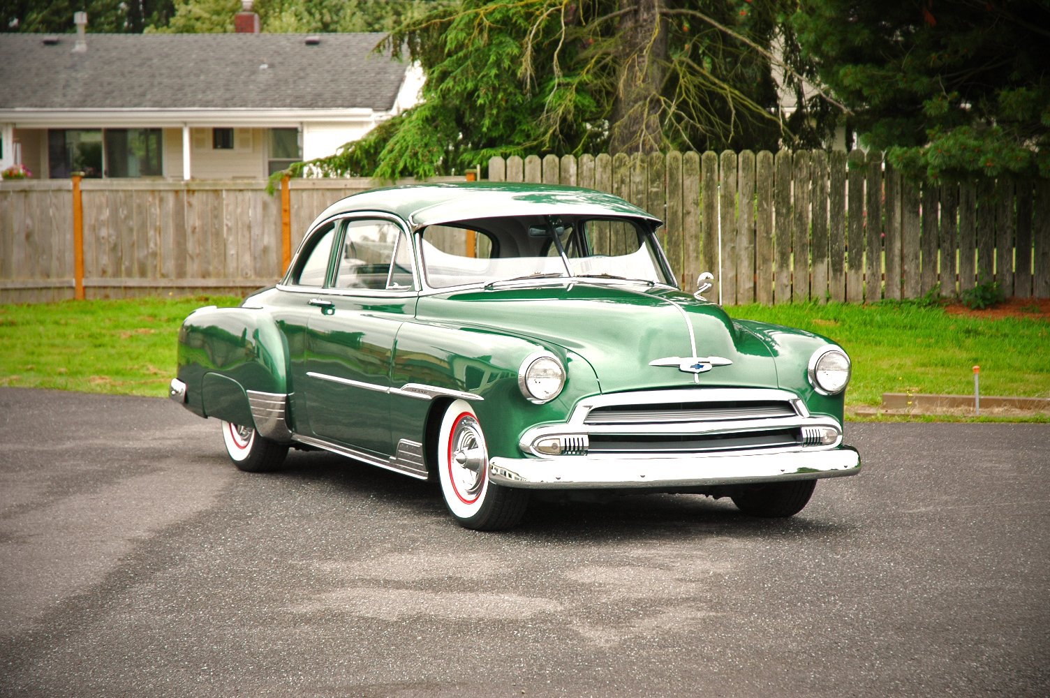 Description: A green car parked in a parking lot next to a house and a fenced in yard with a wooden fence.