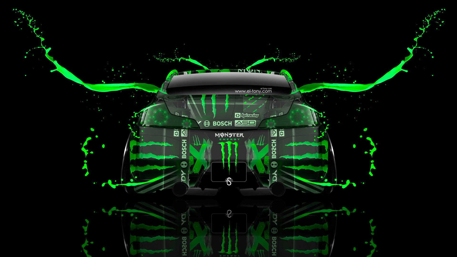 Description: A car with green paint on it's body and wings on the hood.