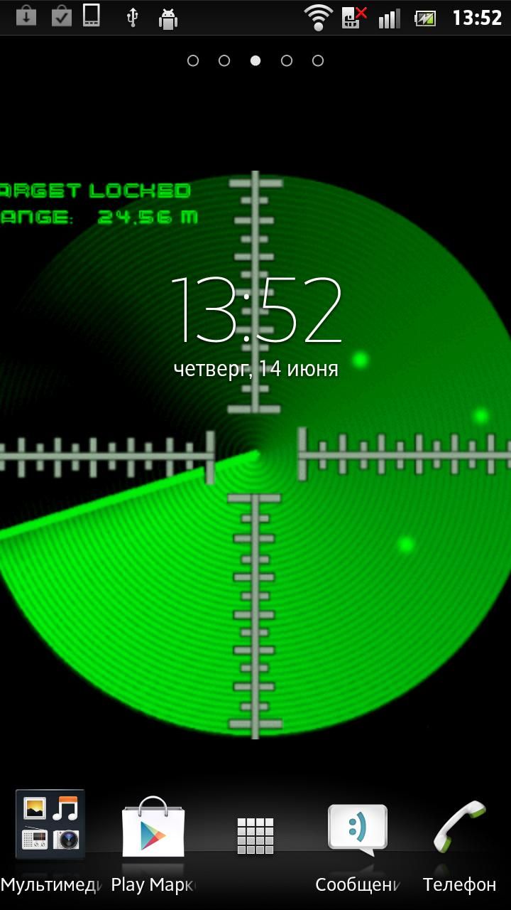 Description: A green clock with a black background and a white clock face on it's screen.