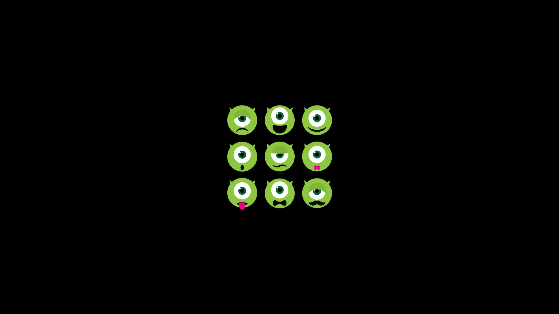 Description: A group of green eyes with a black background and a black background with a green eyeball in the middle.