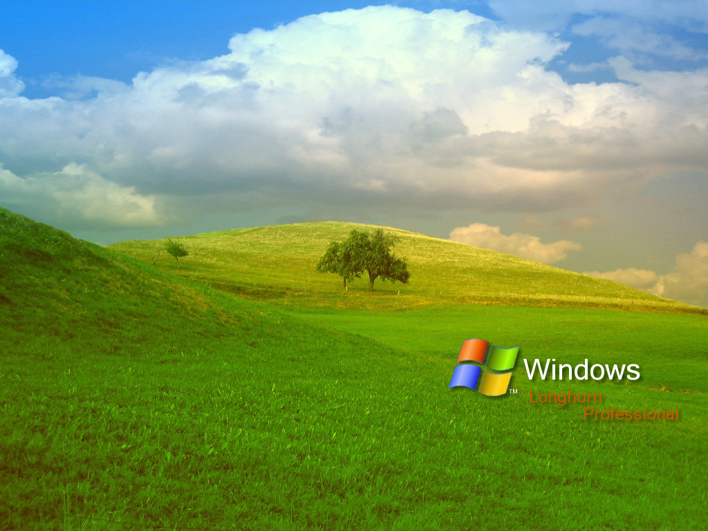 Description: A green field with a tree on top of it and a windows logo on the side of the field.