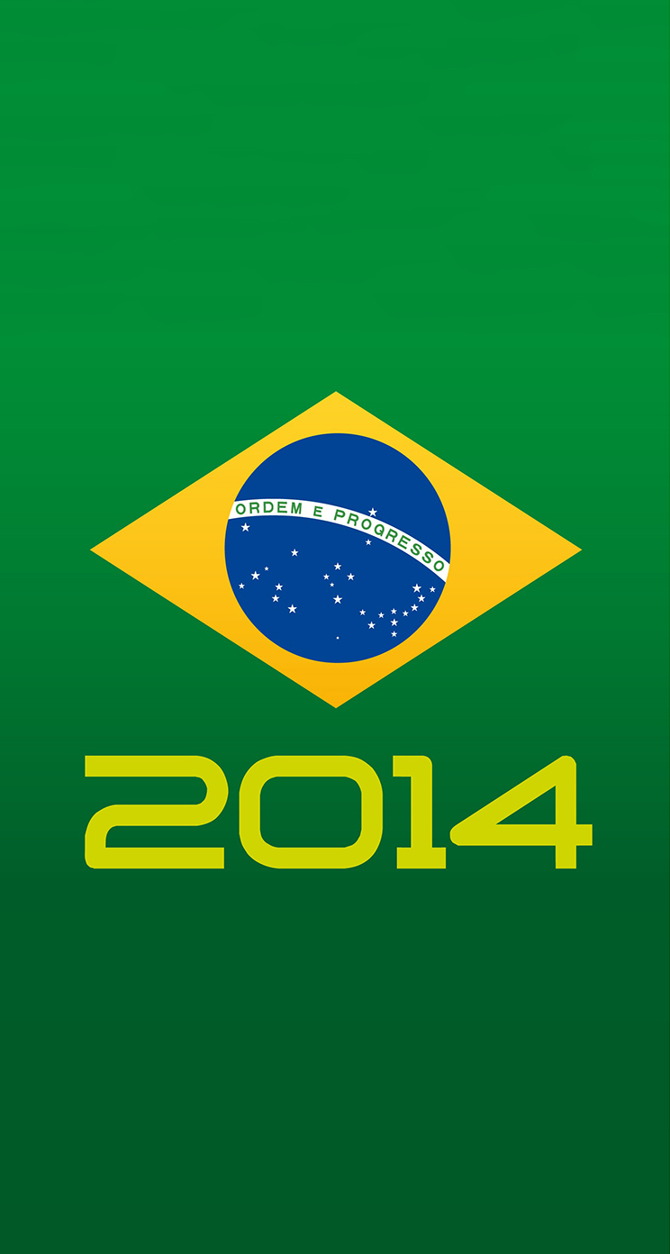 Description: A green background with a yellow and blue flag and the number 2014 in the center of the image is a soccer ball.