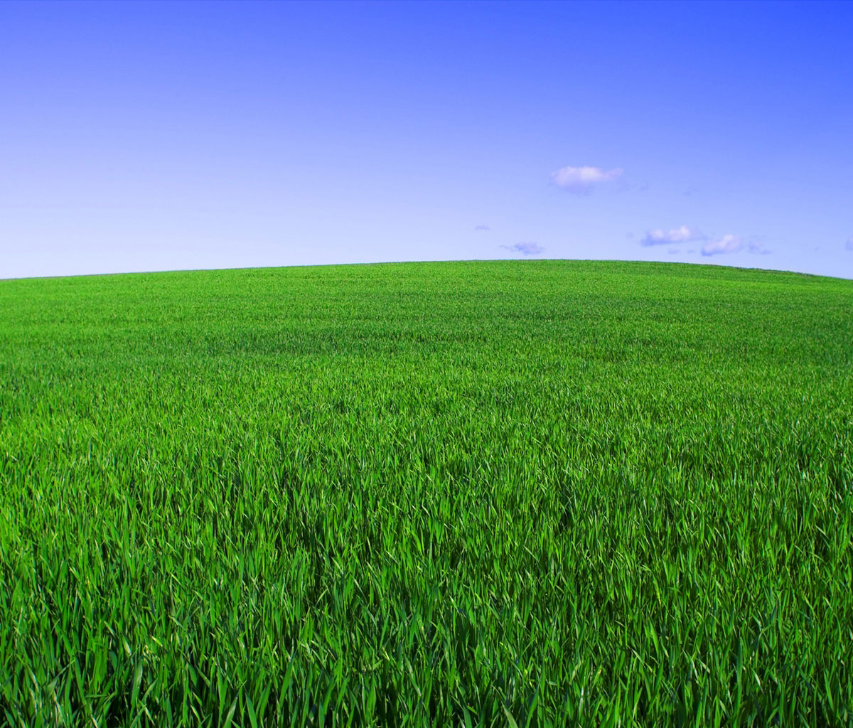 Description: A field of green grass with a blue sky in the background and a few clouds in the sky above.