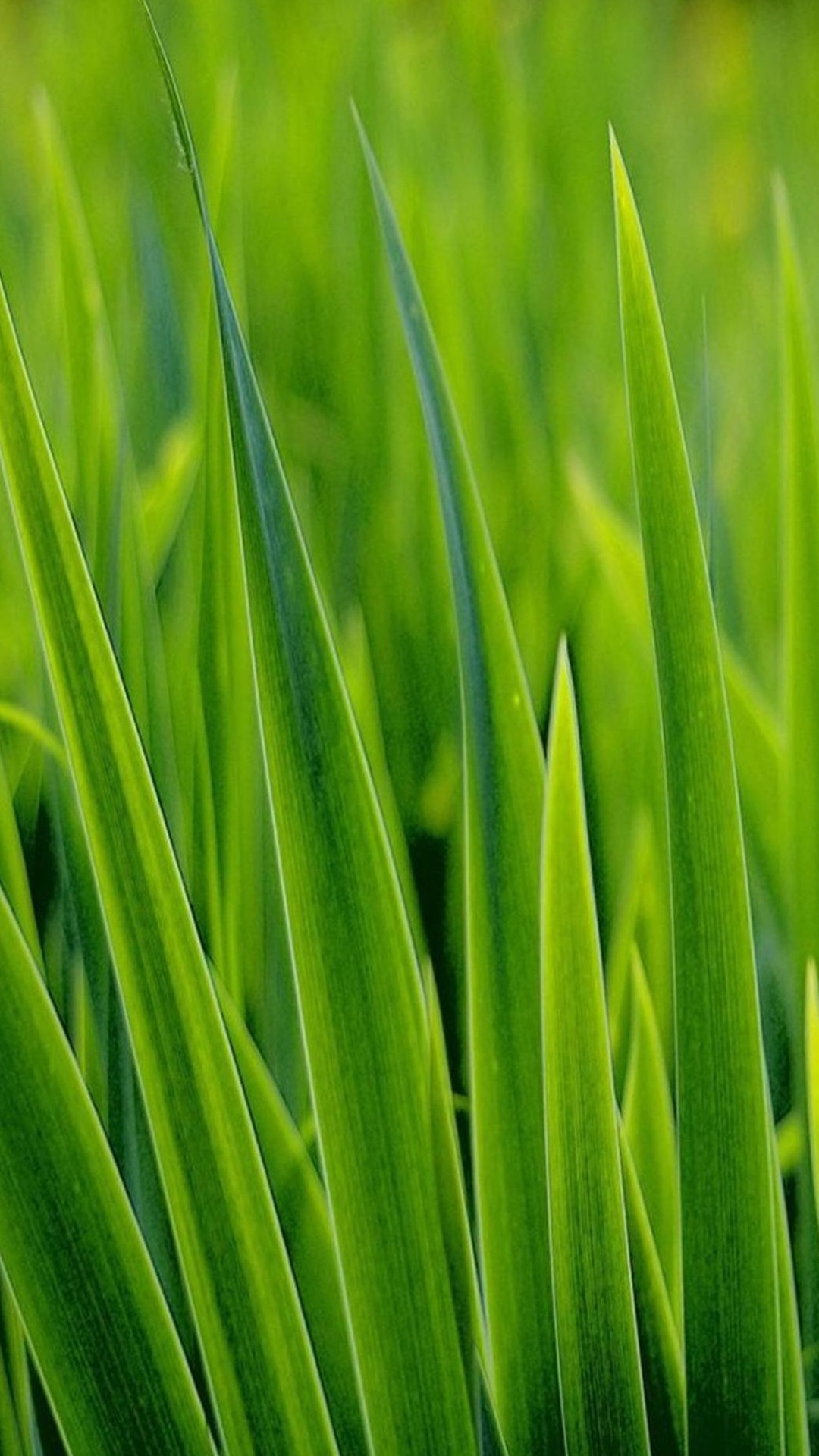 Description: A close up of a green grass with a blurry background of the grass and the grass is very thin.