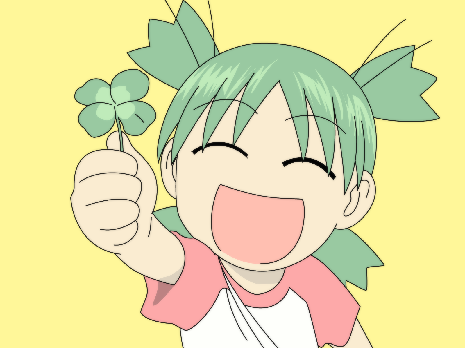 Description: A cartoon girl with green hair holding a flower in her hand and making a face with her tongue out.
