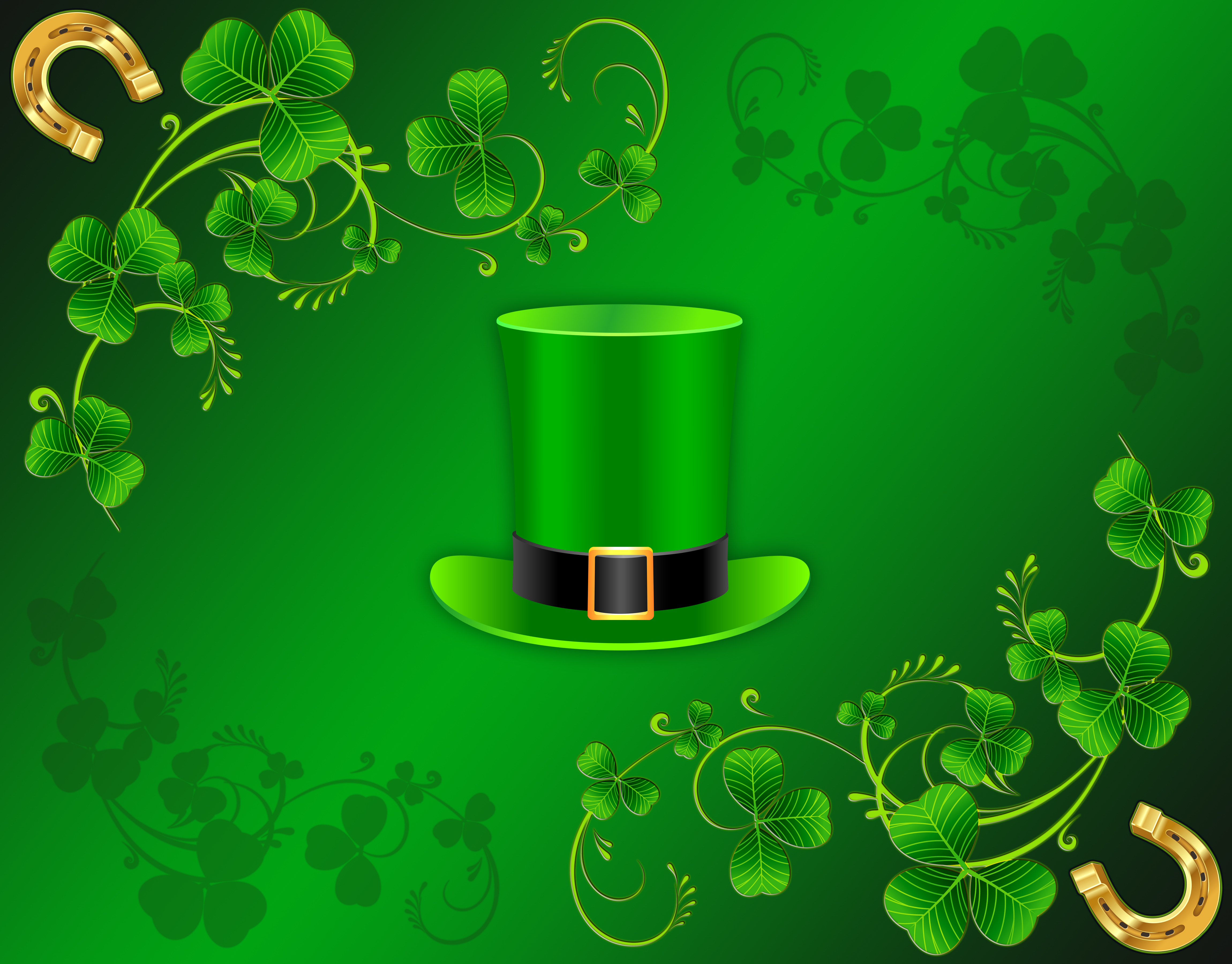 Description: A green hat with shamrock leaves and gold numbers on it.
