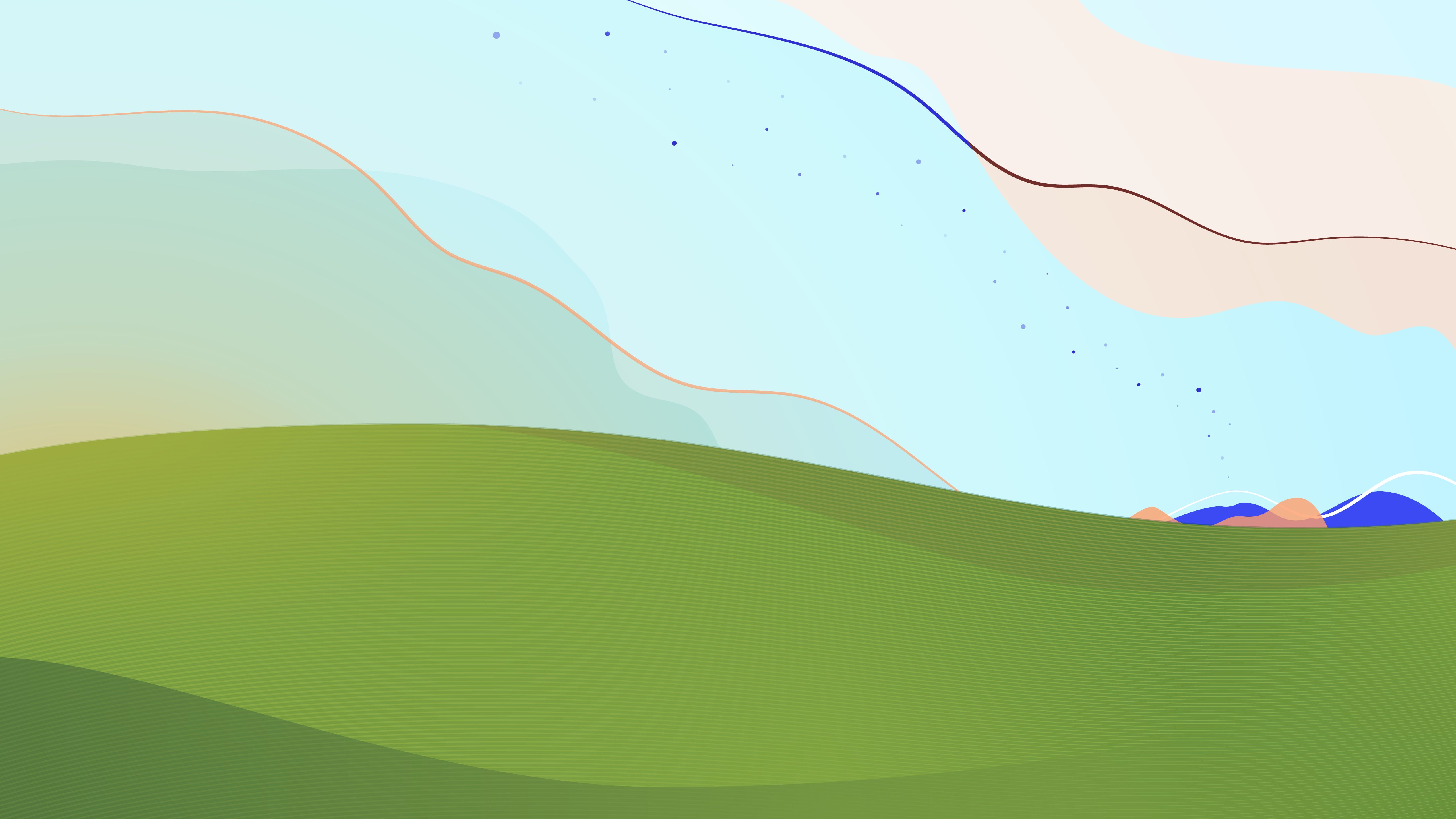 Description: A cartoon of a green hill with a blue sky in the background and a red kite flying in the sky.