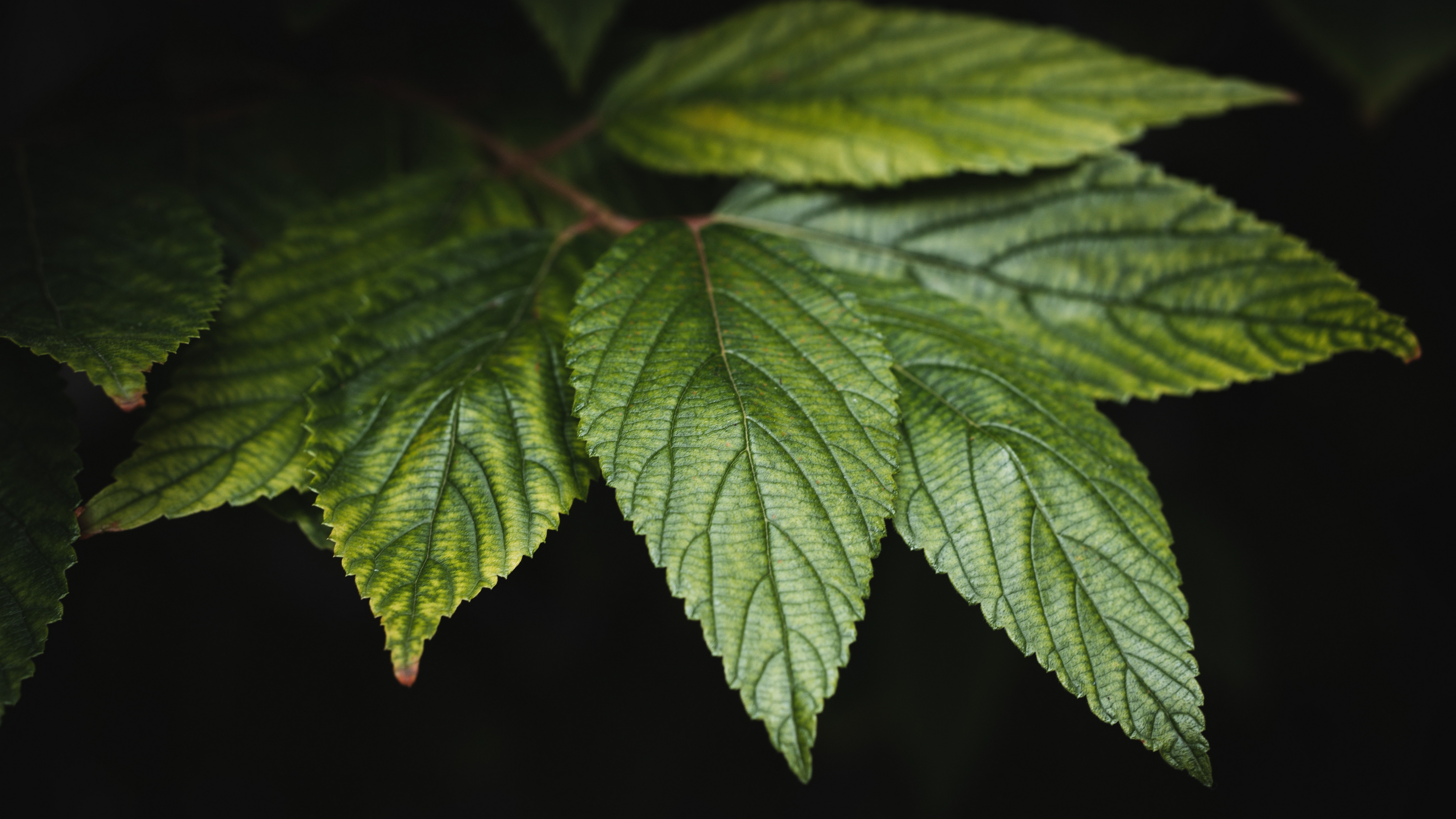 Description: A close up of a green leaf on a black background with a black background behind it and a black background behind it.