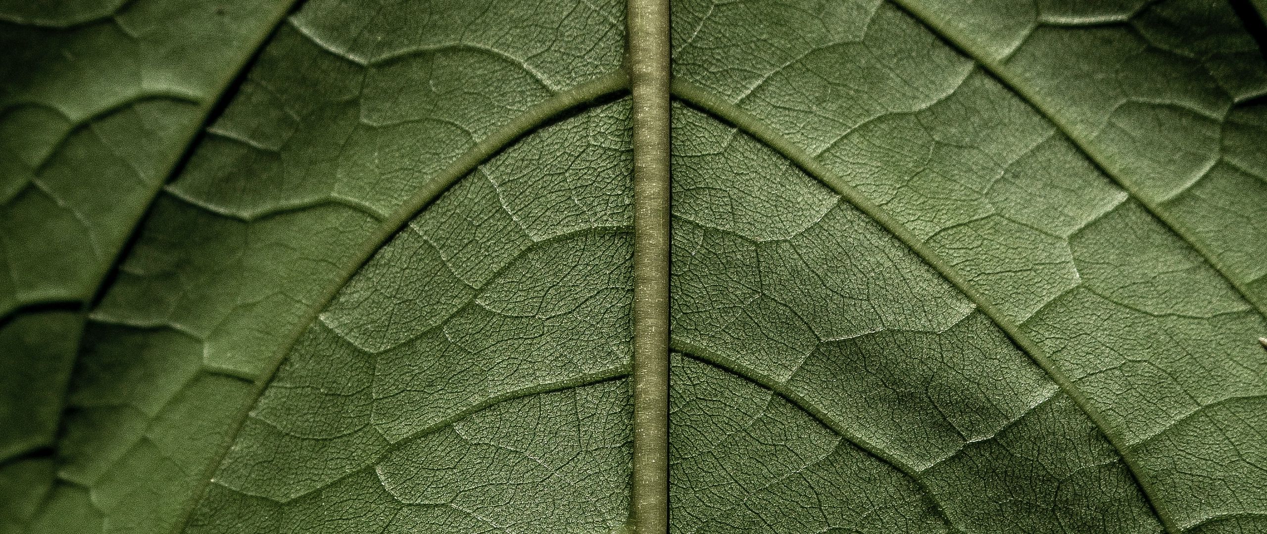 Description: A close up of a green leaf with a thin line of leaves on it's side and a thin line of leaves on the other side.
