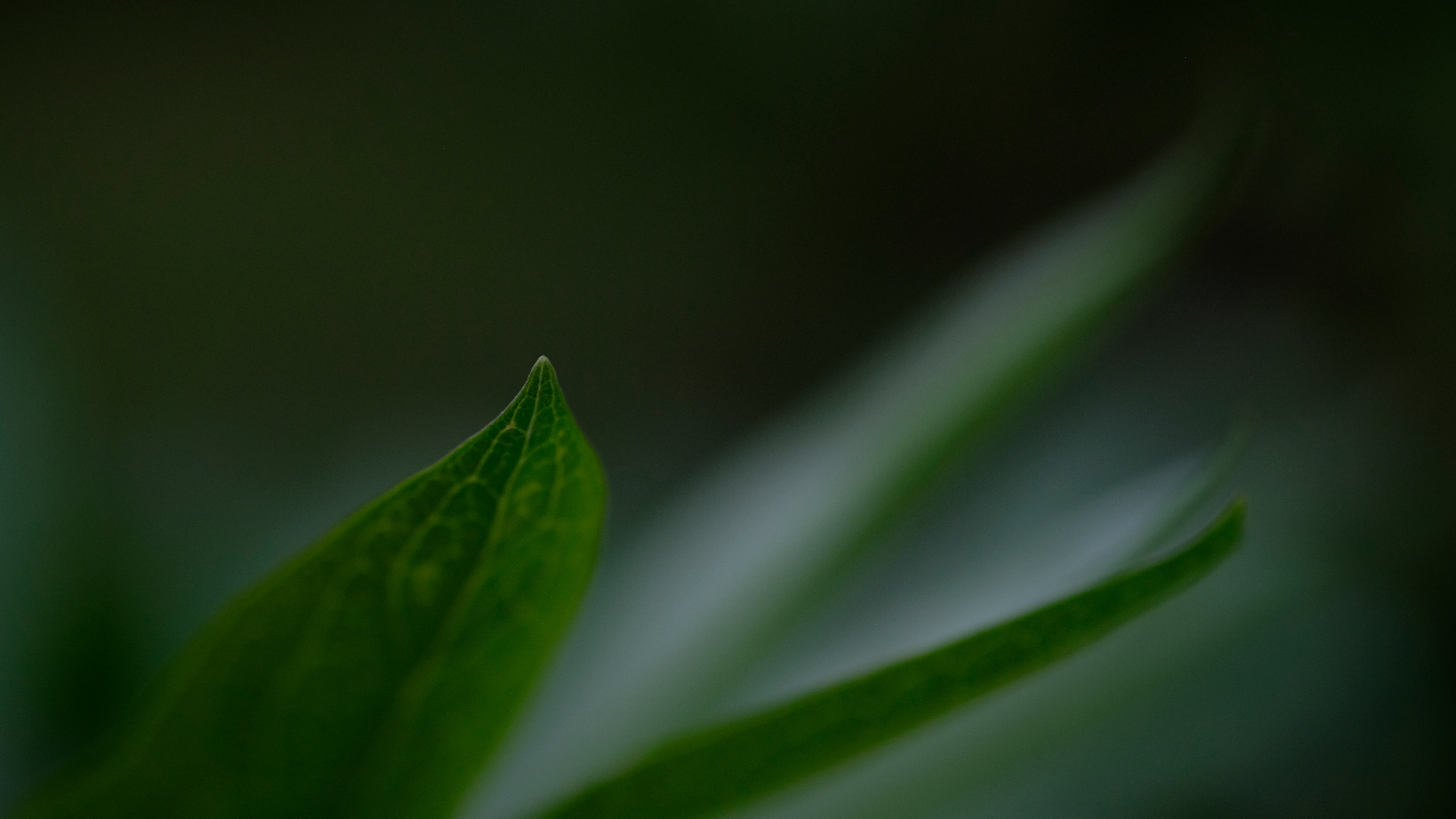 Description: A close up of a green leaf with a blurry background of the leaves and the ground below it.