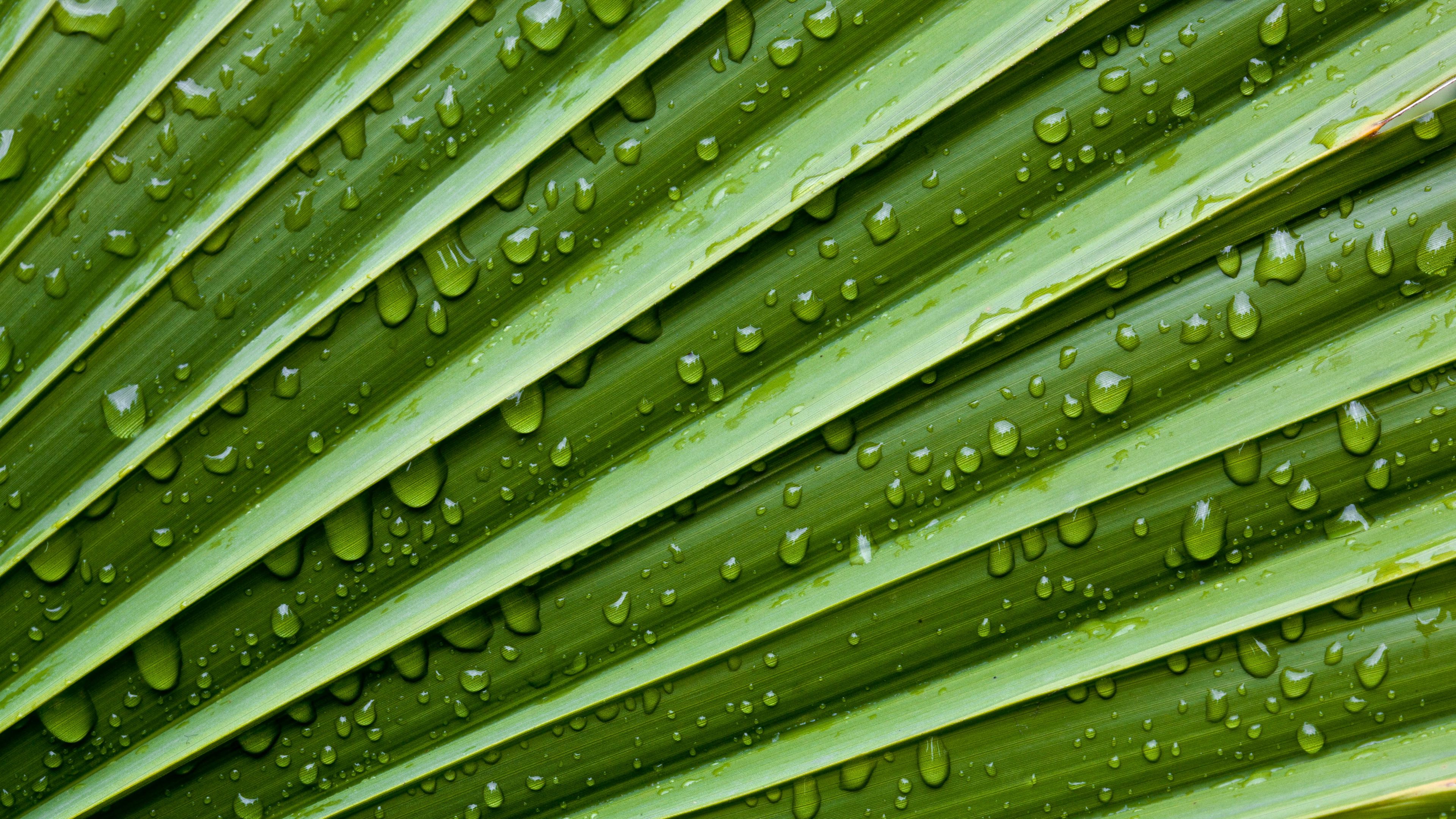 Description: A close up of a green leaf with water drops on it's leaves and leaves are shown in the background.