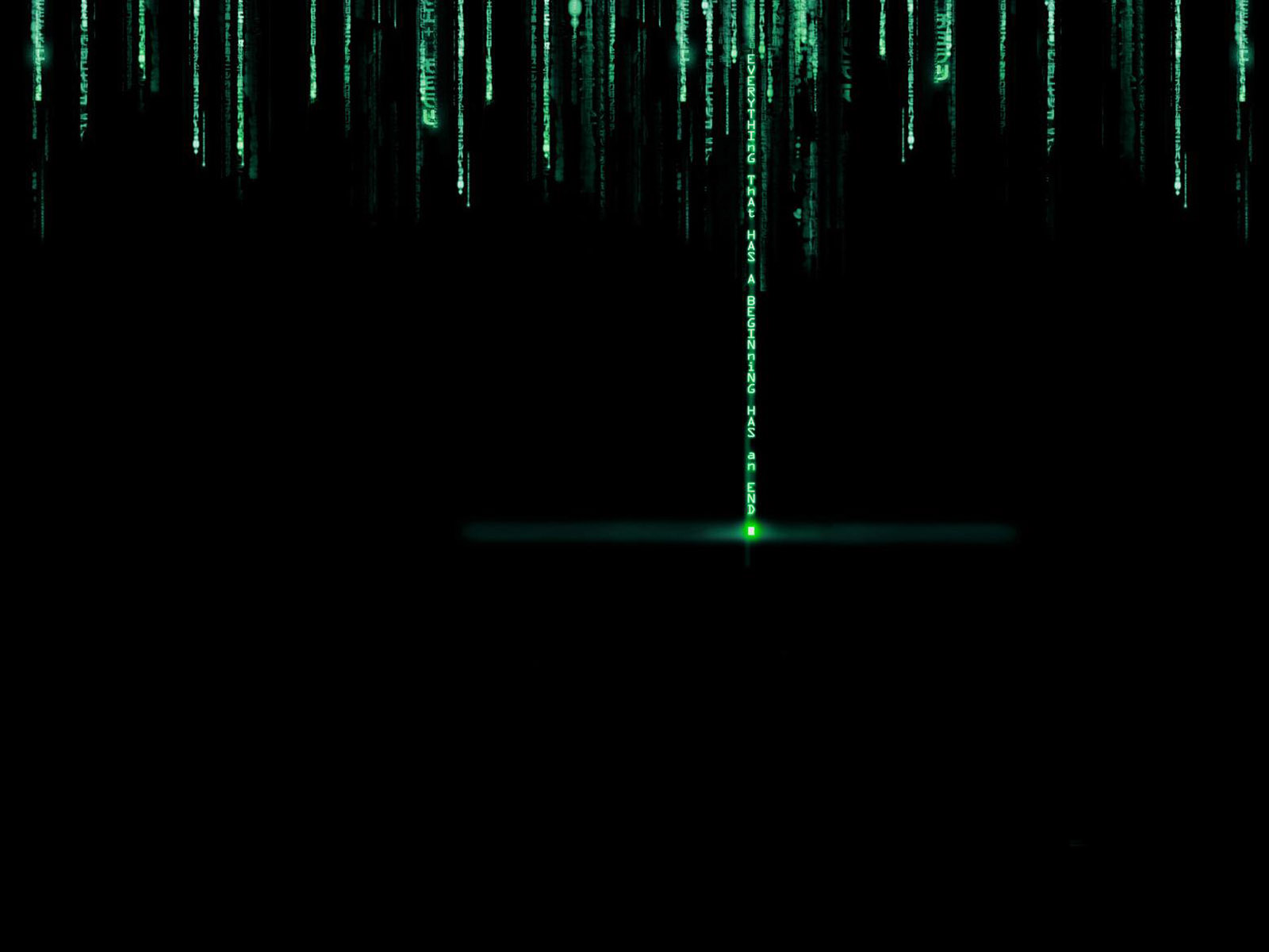 Description: A green line of data is shown in the dark with a green light shining on it's side.