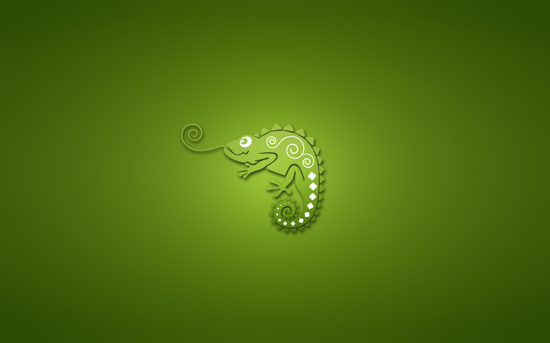 Description: A green wall with a lizard on it's side and a swirly tail on the side of the wall.