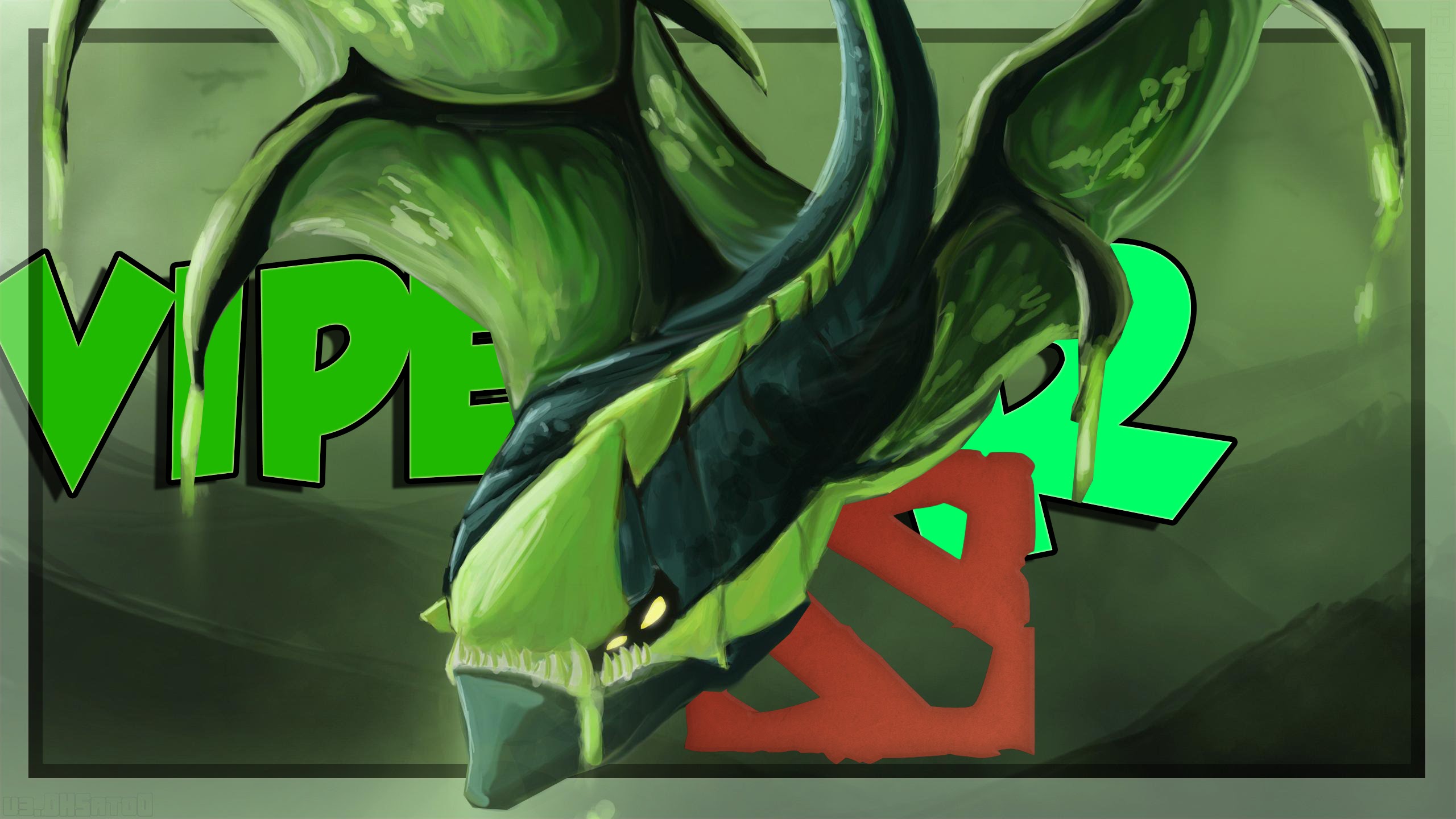 Description: A green monster with a red and black letter v on it's face and a green and black background.