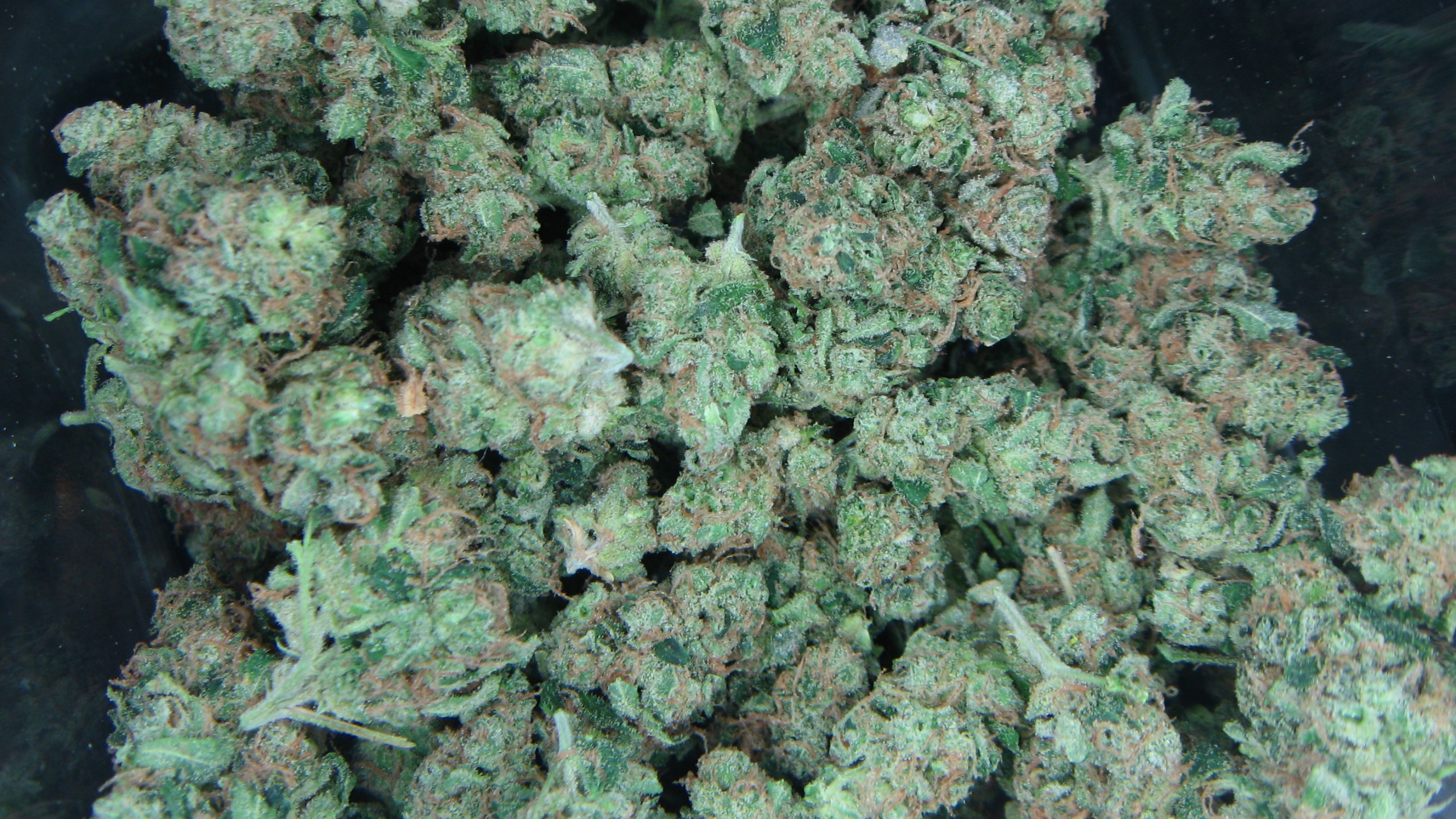 Description: A close up of a bunch of green plants in a black container with a black background and a black border.