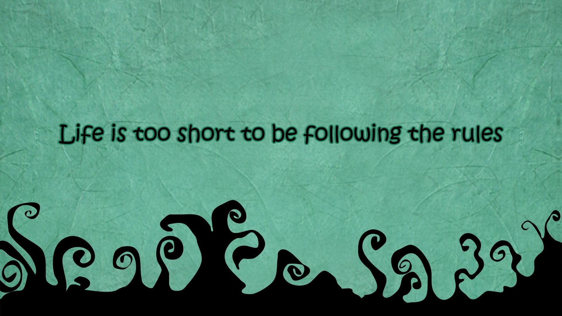 Description: A picture of a green background with a quote on it that says life is too short to be following the rules.