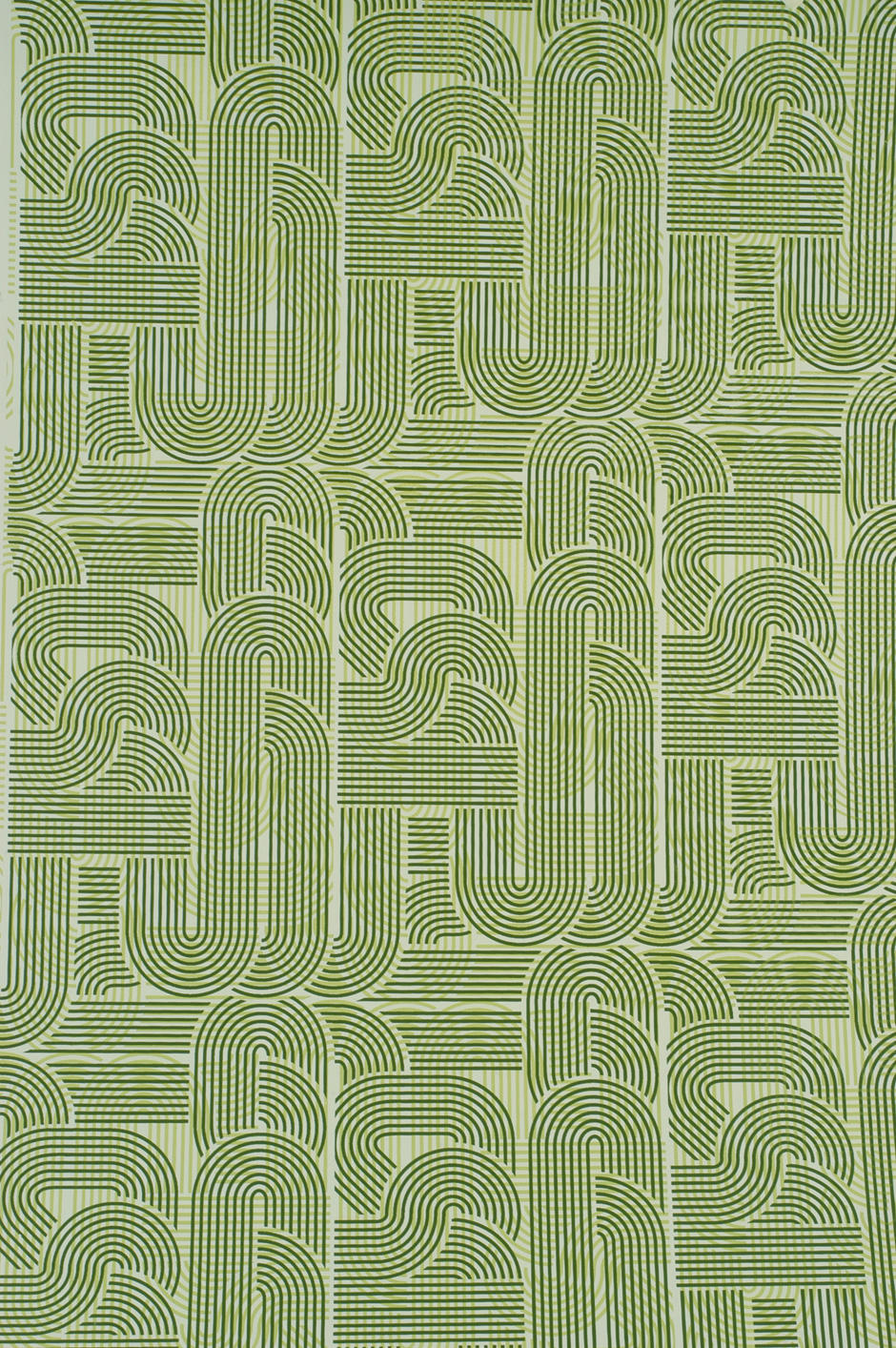 Description: A green rug with a pattern on it and a white background with a green border on the bottom of the rug.