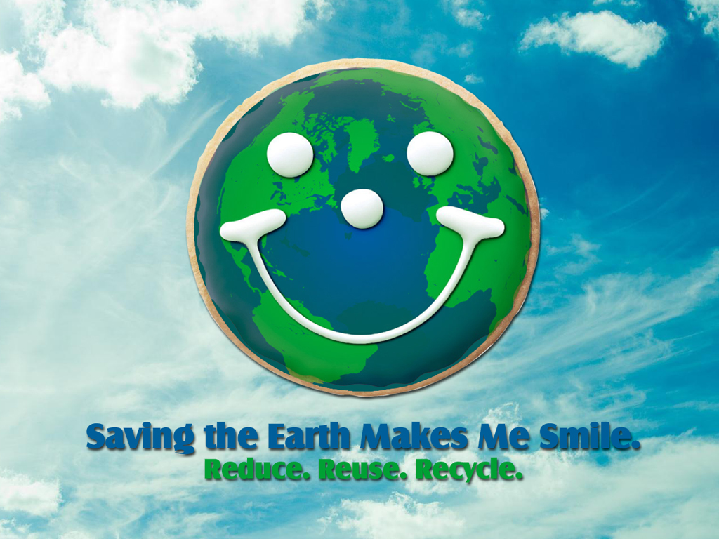 Description: A green smiley face with the words saving the earth makes me smile reduce reduce recyclement and reduce pollution.