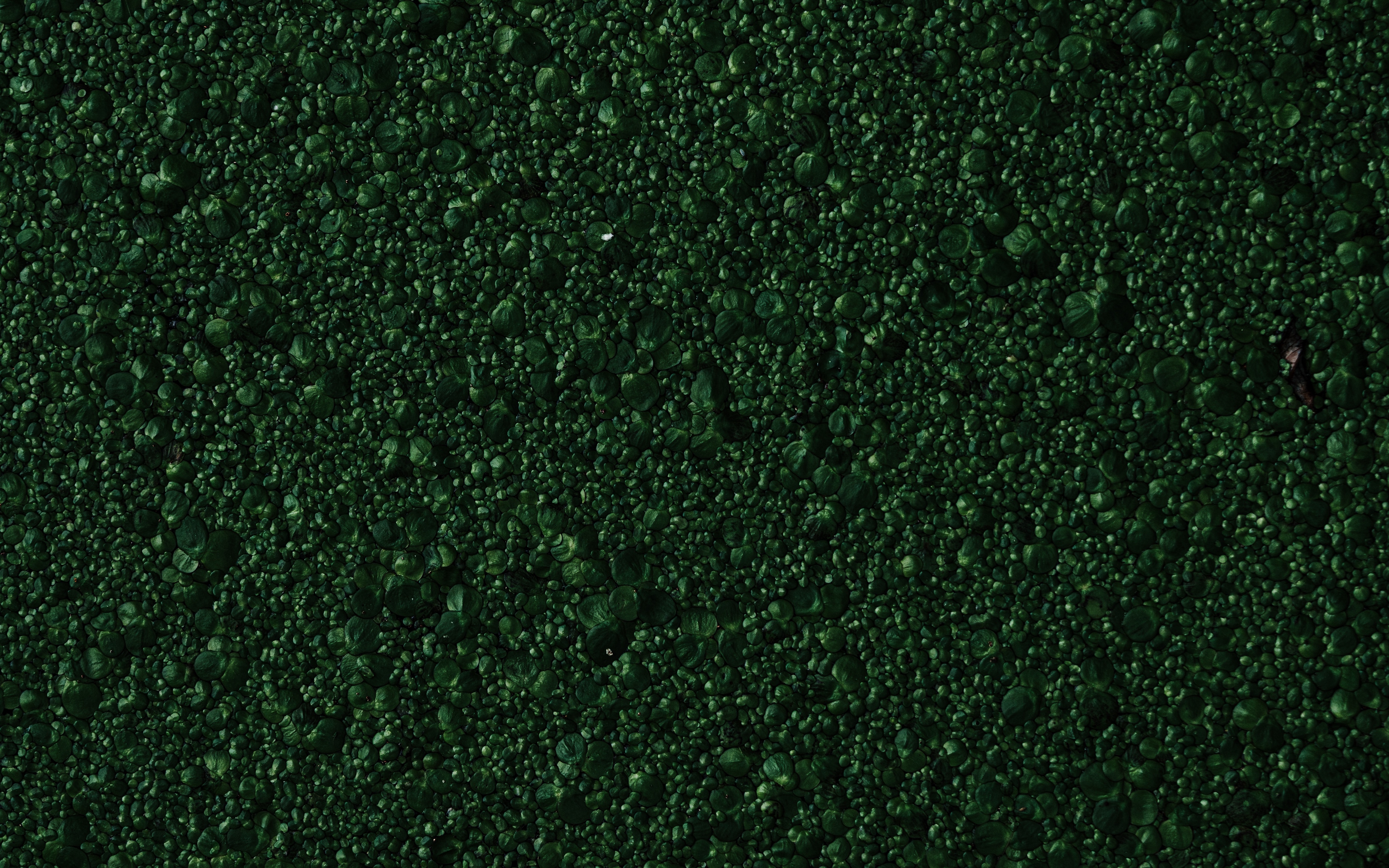 Description: A green wall with a lot of water droplets on it and a red object in the middle of the wall.