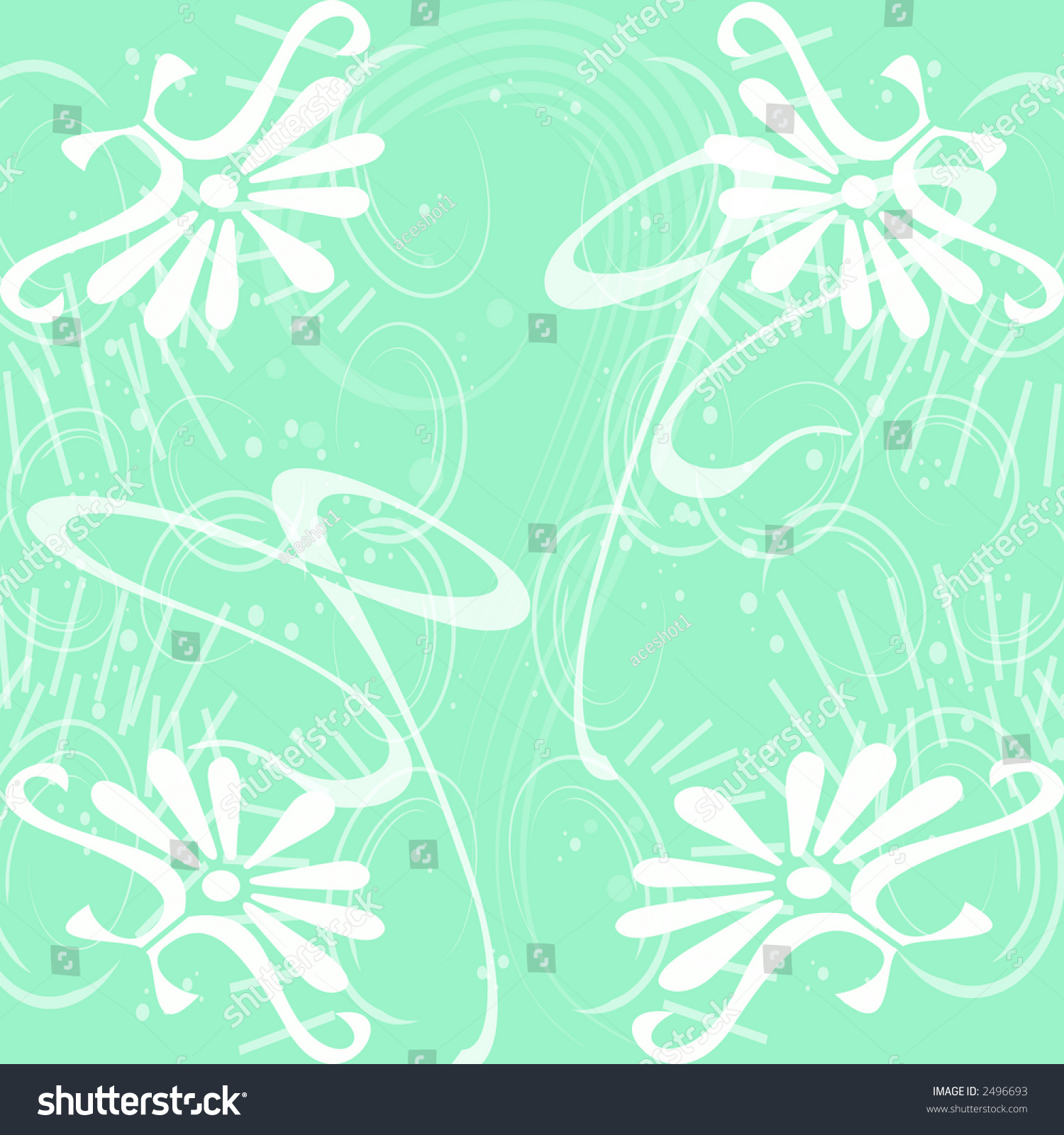 Description: A green and white floral background with swirls and bubbles on a light green background with white swirls and bubbles.