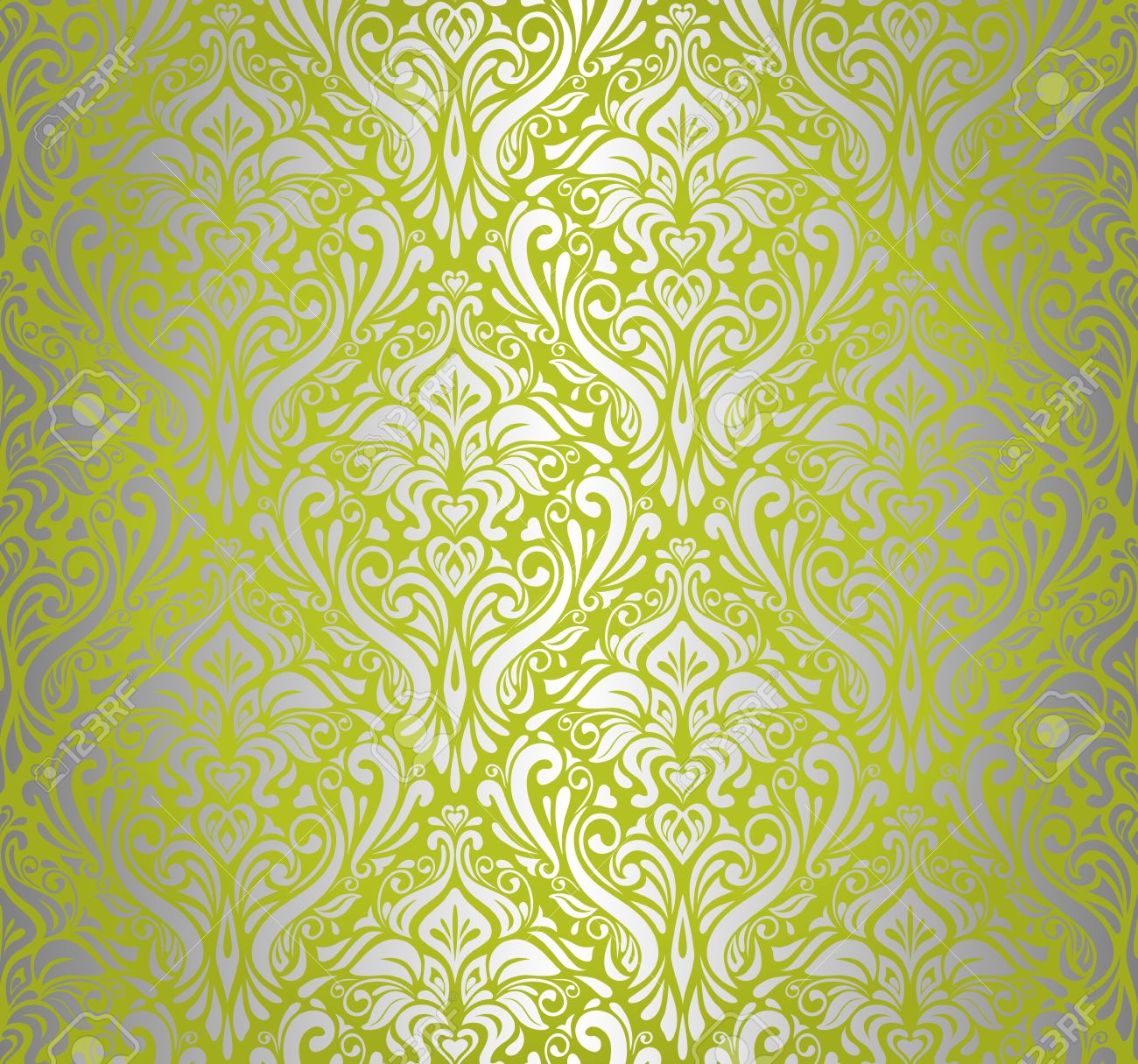 Description: A green and white floral pattern with swirls and leaves on a green background stock photo - 959999.