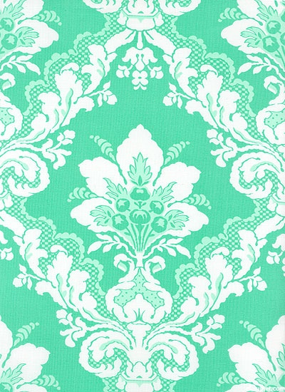 Description: A green and white wallpaper with a large flower pattern on it's side of the wall and a white and blue wall.