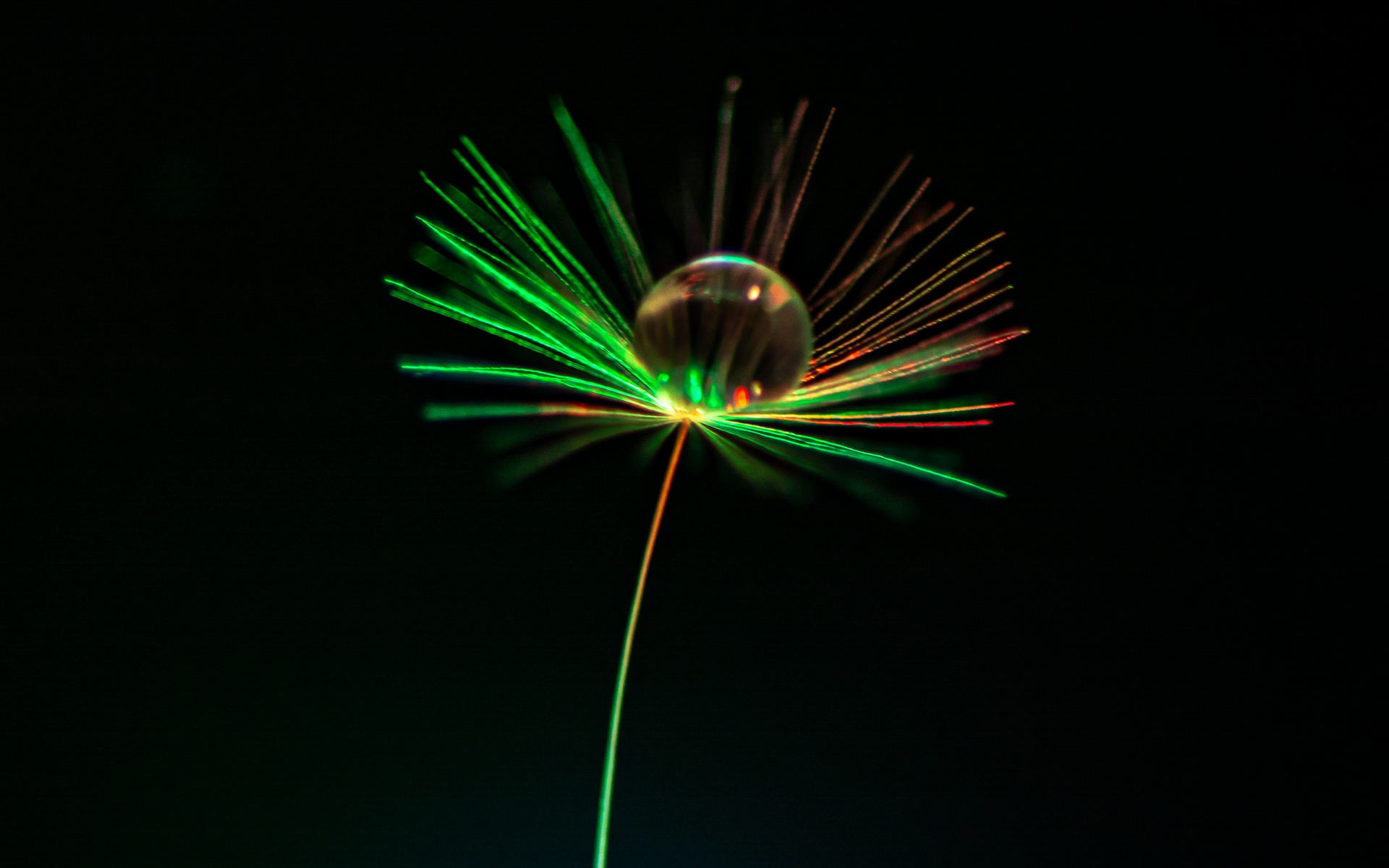 Description: A green and yellow flower with a black background and a green stem with a green tip and a green tip.