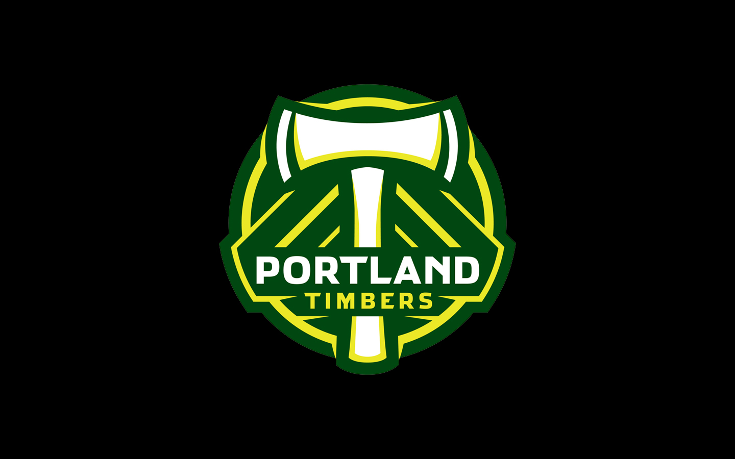 Description: A green and yellow logo with a hammer in the middle of it and the words portland timbers on it.