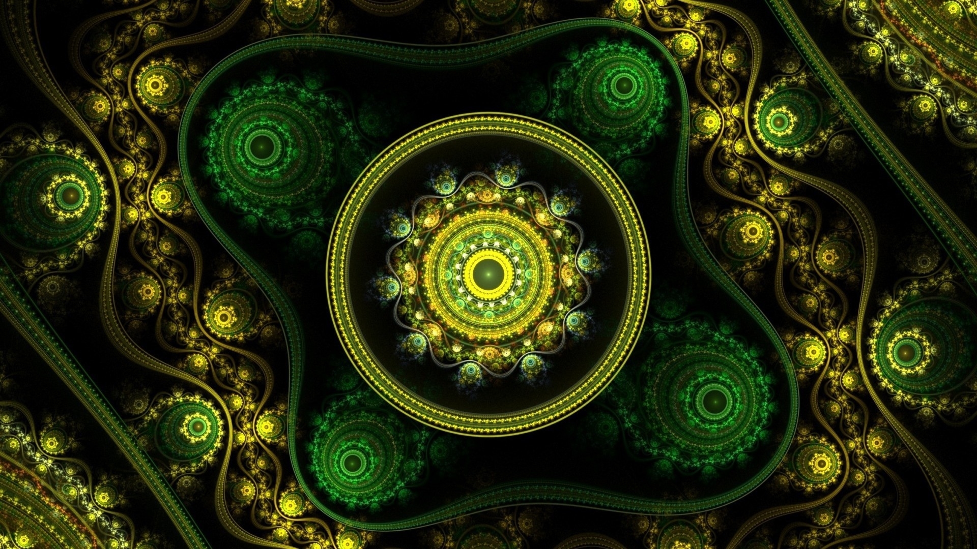 Description: A computer generated image of a green and yellow pattern with a circular design on the center of the image.