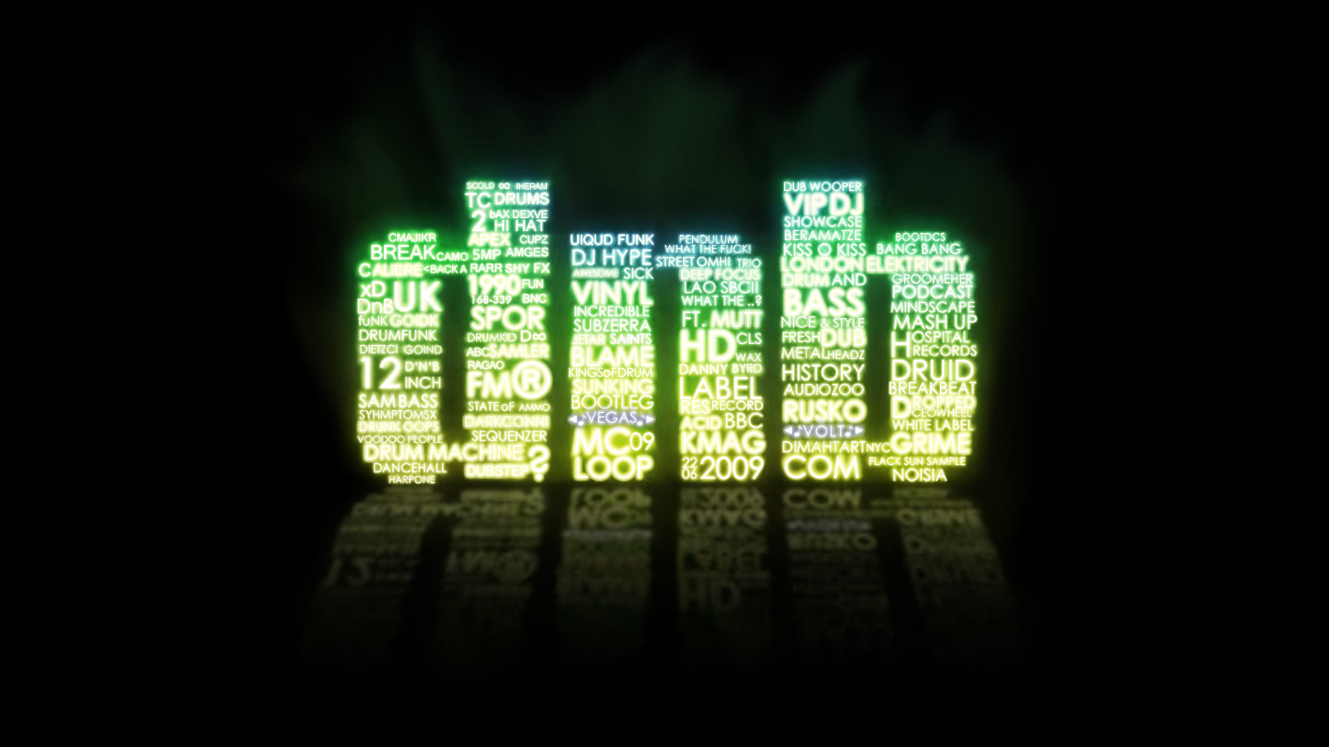 Description: A green and yellow lit up sign in the dark with a reflection on the ground below it that says.