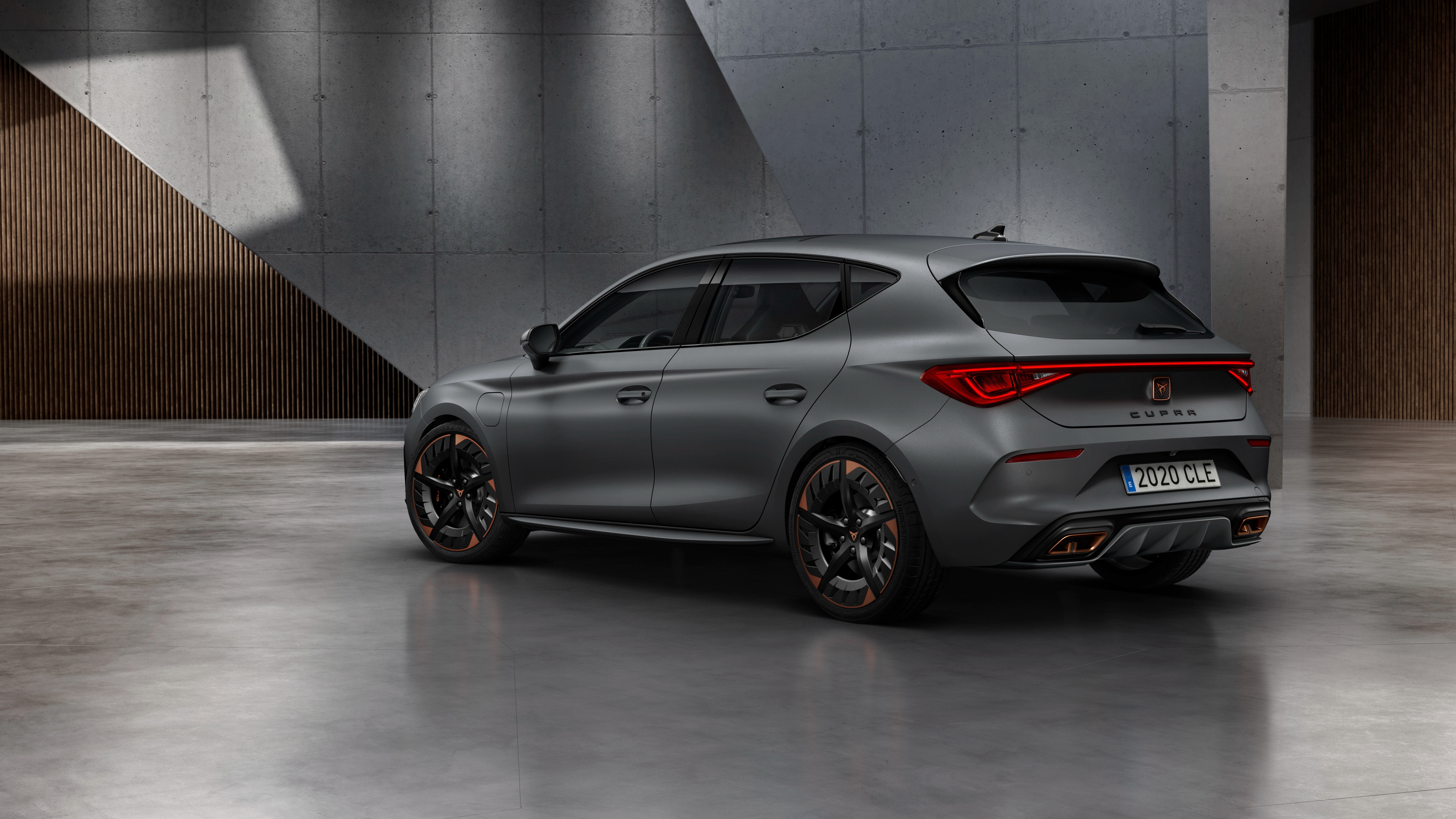 Description: A grey car parked in a garage next to a wall with a light on it's side and a black car in the middle.