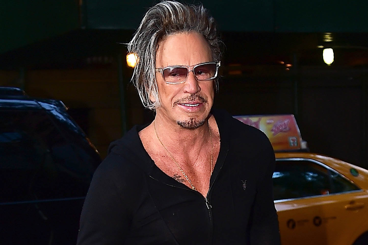 Description: A man with grey hair and sunglasses walking down a street next to a taxi cab and a taxi cab.
