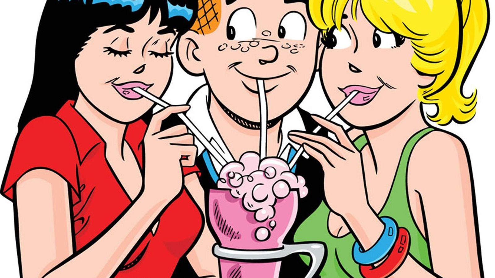 Description: A group of people drinking a drink together with straws in their mouths and drinking from a cup with a straw in it.