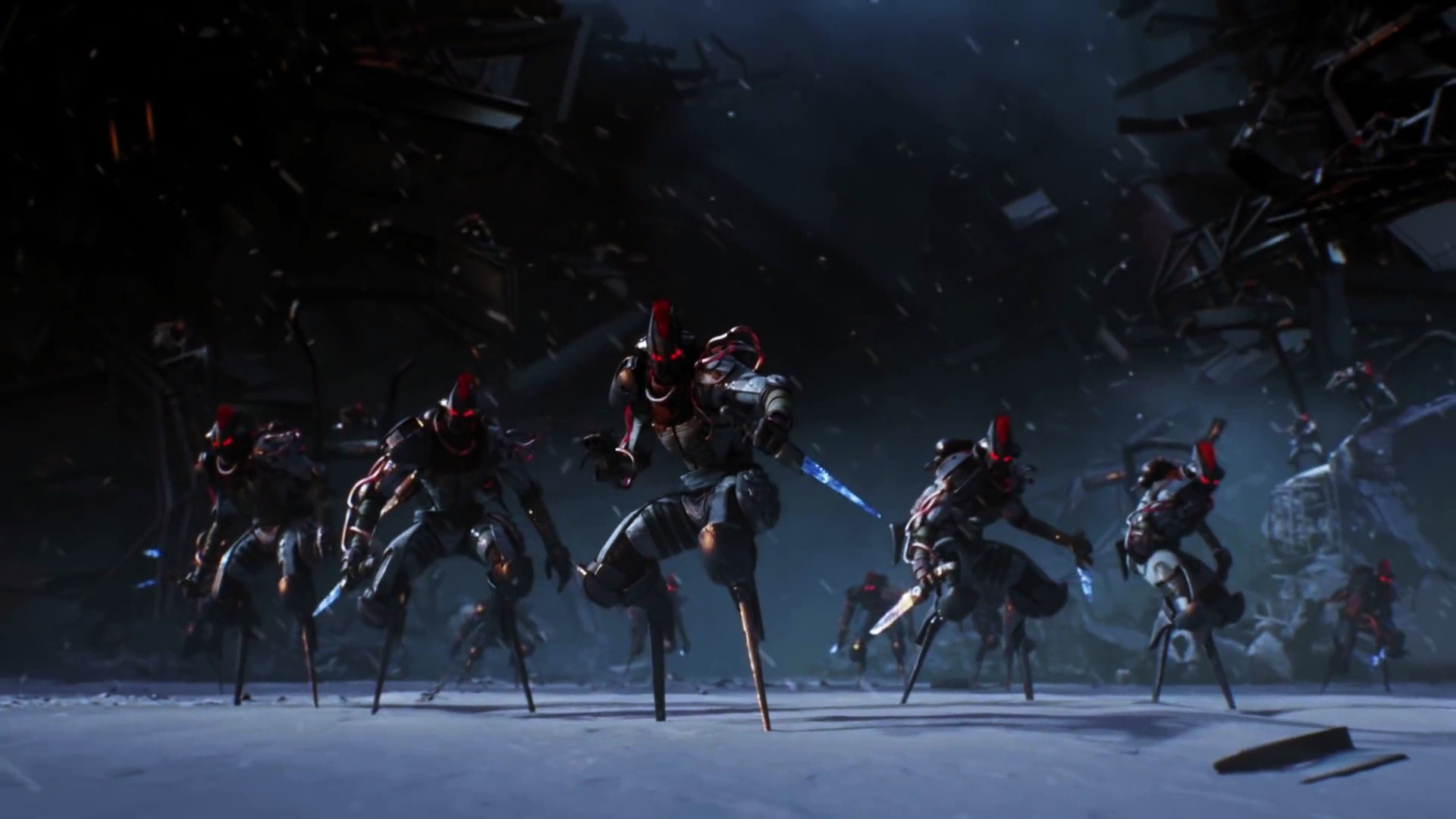 Description: A group of people riding horses in the snow at night with lights on them and a person on a horse.