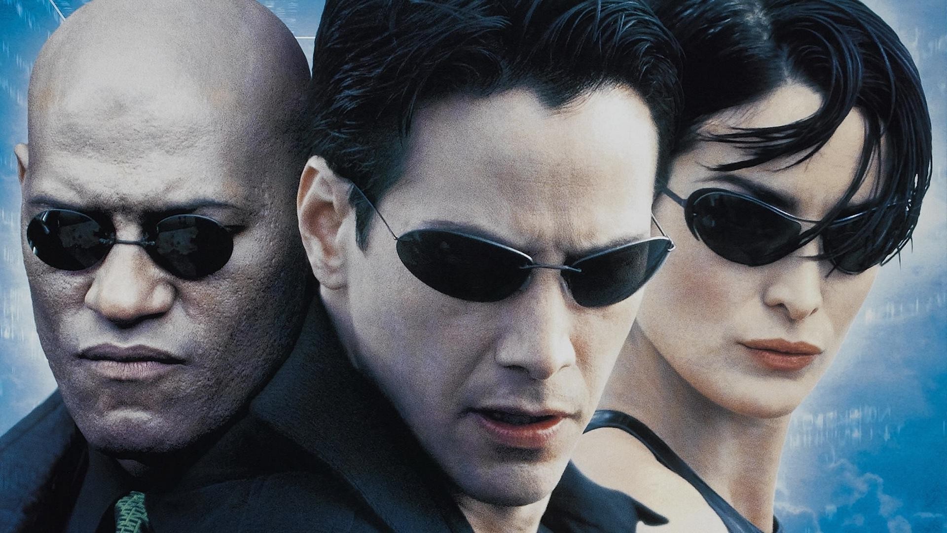 Description: A group of men wearing sunglasses and a suit and tie with a blue background and a blue sky in the background.