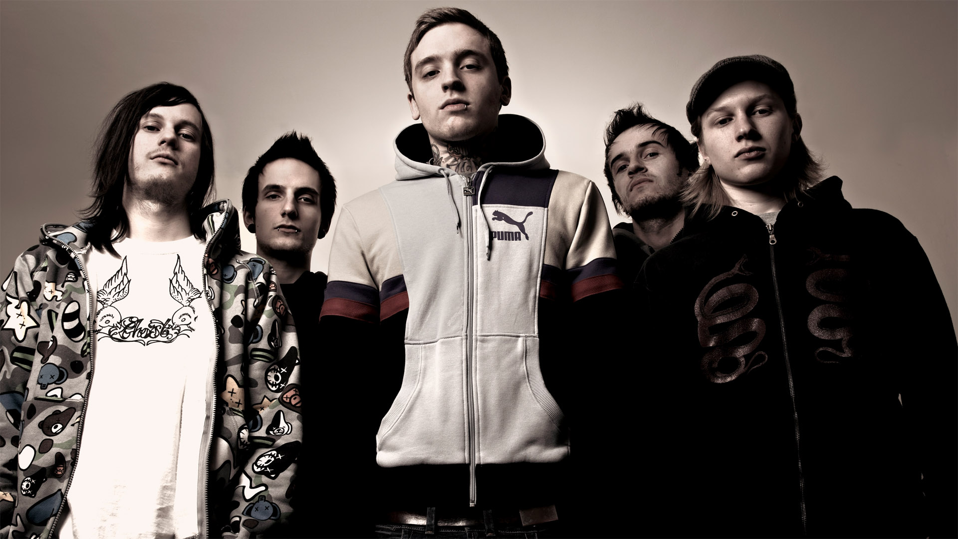 Description: A group of men standing next to each other in front of a wall with a white background and a black and white photo.
