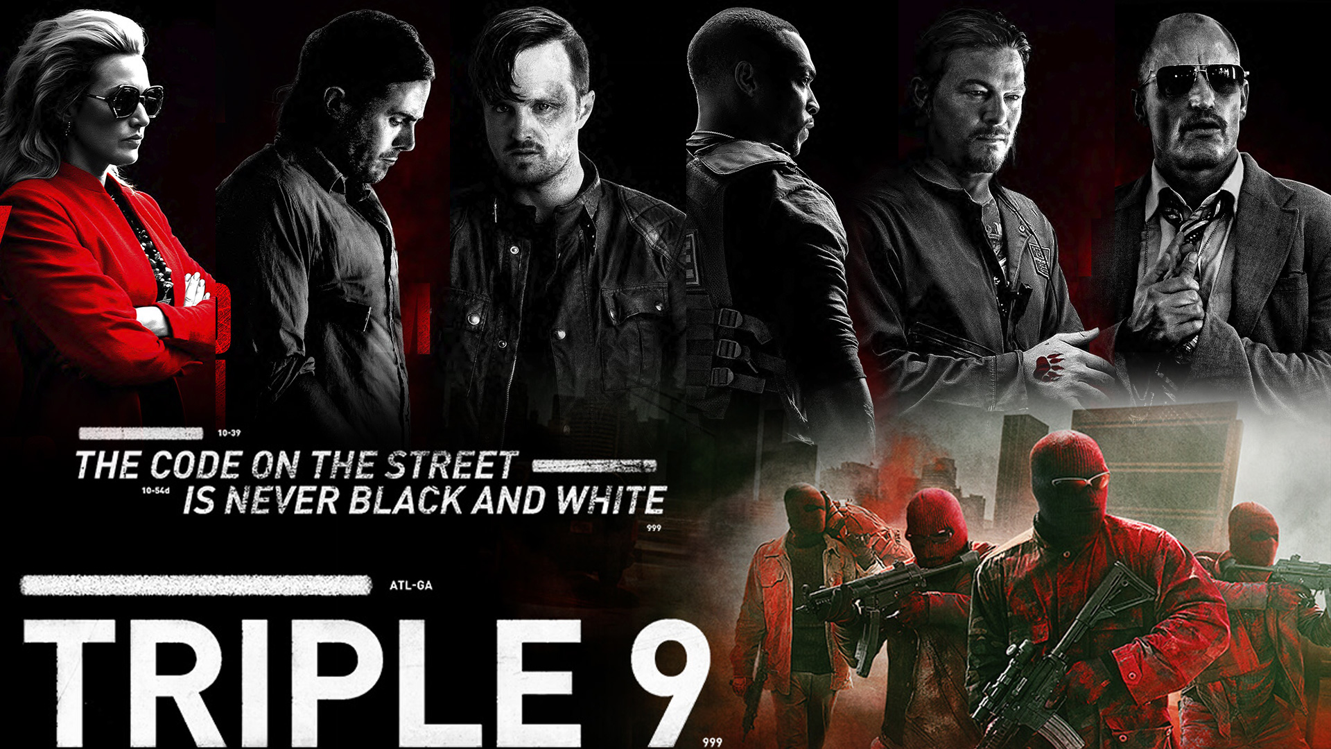 Description: A group of people standing next to each other in front of a black and white background with the words triple 9.