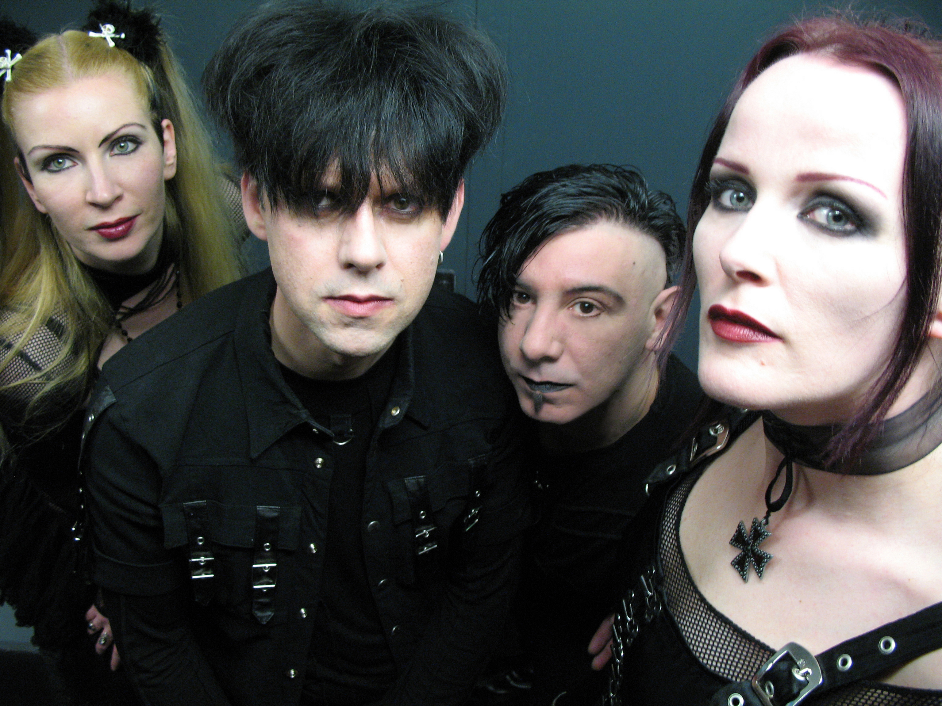 Description: A group of people posing for a picture together with one woman wearing a black shirt and the other wearing a black shirt.