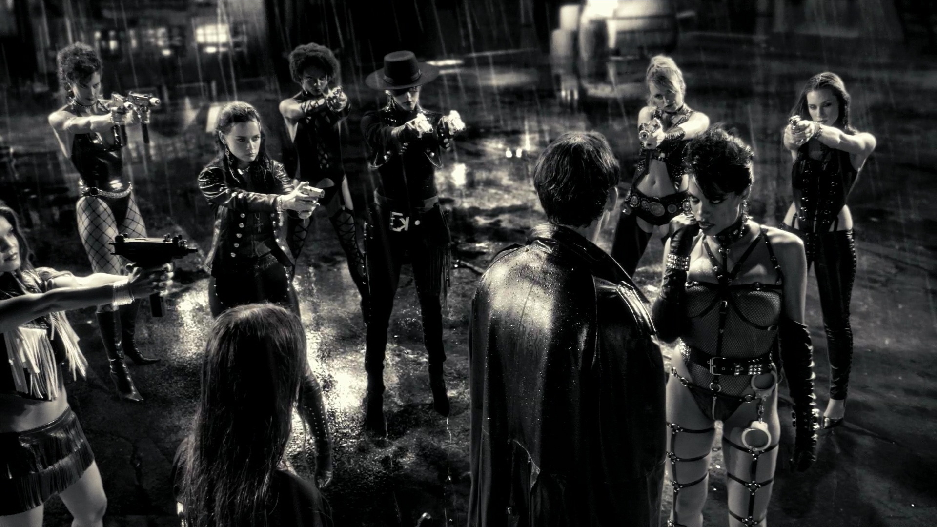 Description: A group of people standing in the rain with a man holding an umbrella over them and a woman holding a plate.