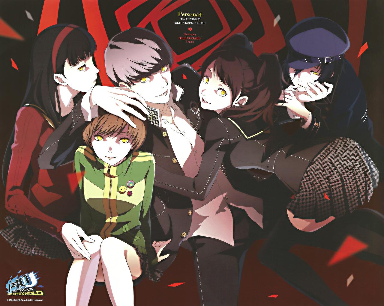 Description: A group of people standing next to each other in front of a red background with a black and white design.