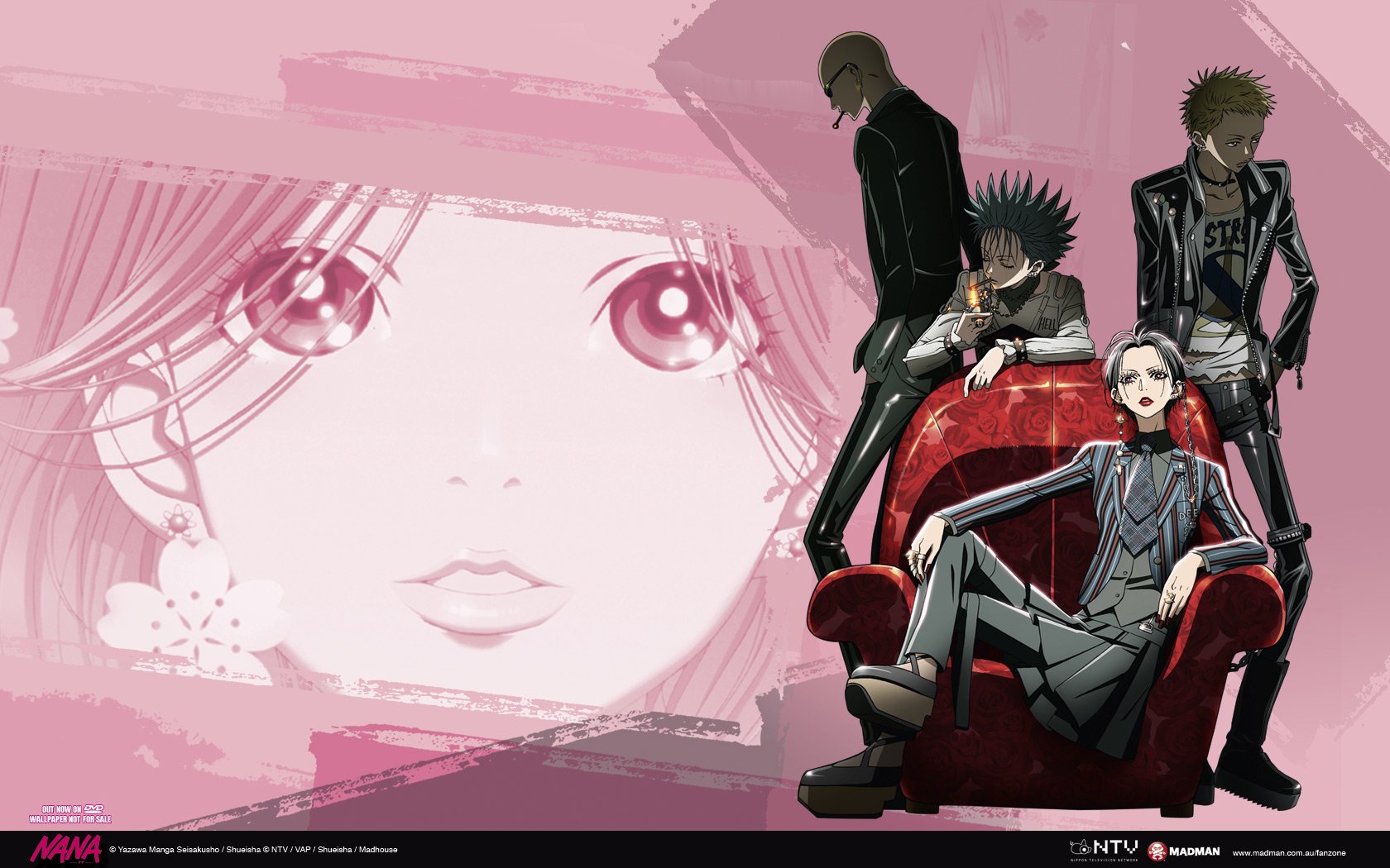 Description: A group of people sitting on top of a red chair next to each other in front of a pink background.