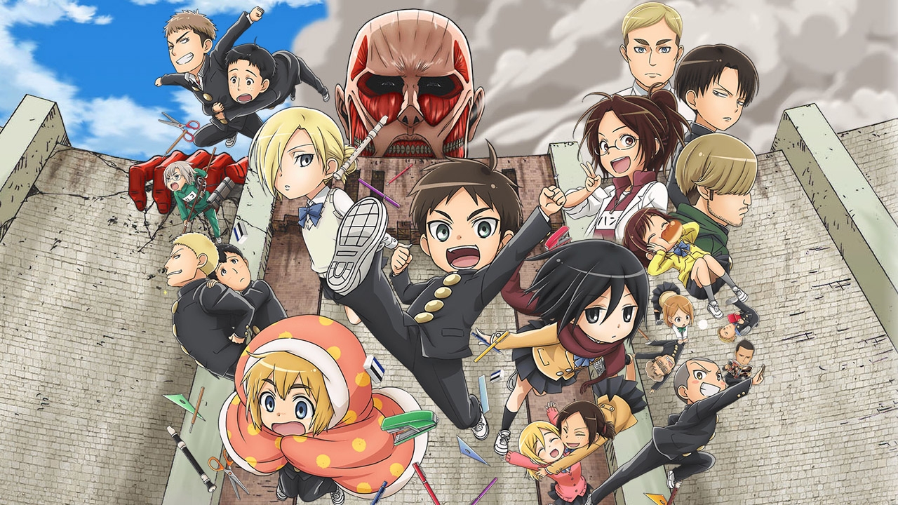 Description: A group of people standing on top of a roof next to each other in front of a sky background.