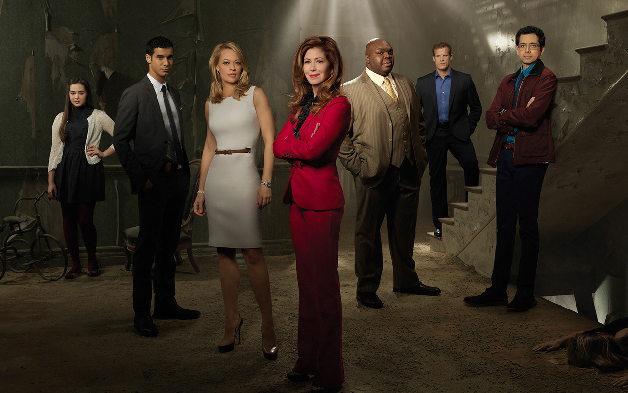 Description: A group of people standing in a room with a staircase in the background and a man in a suit standing in the middle.