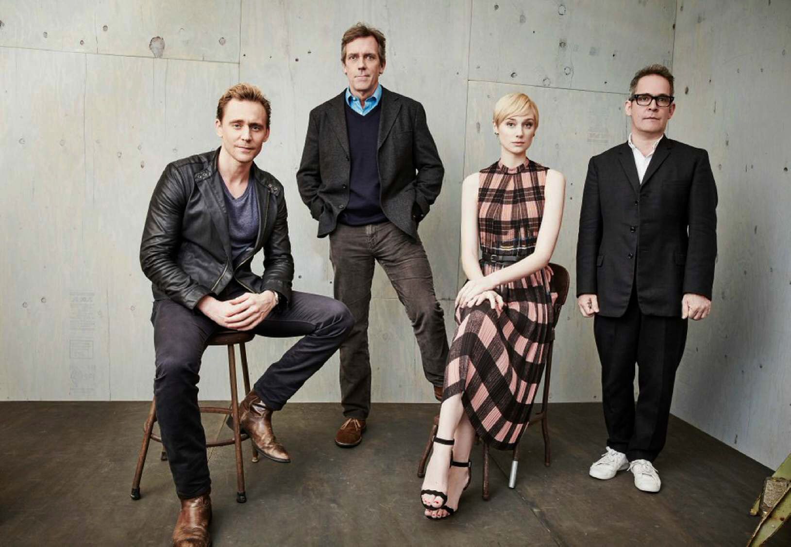 Description: A group of people sitting next to each other on a chair in a room with a wall behind them.