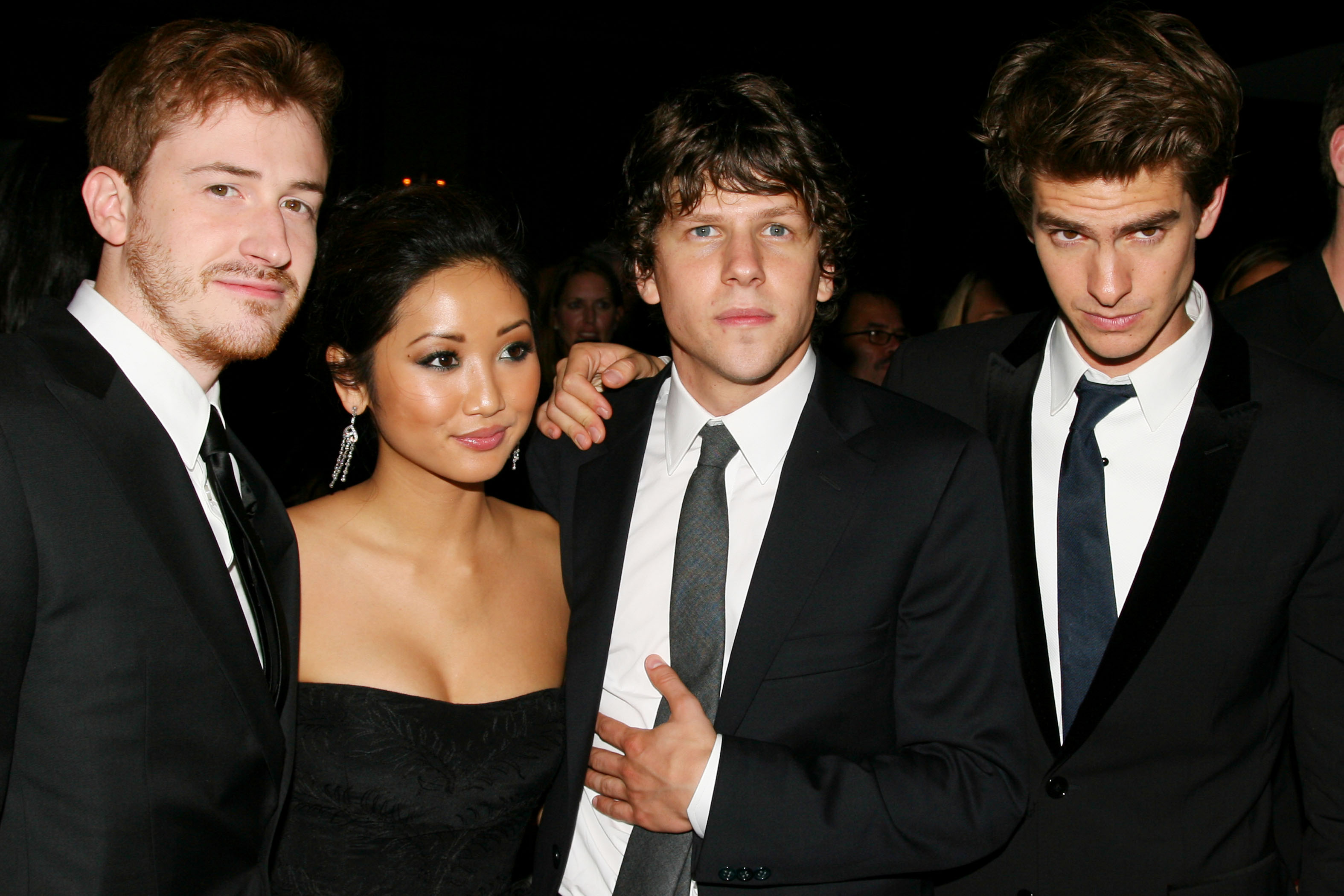 Description: A group of people standing next to each other in a room with people in suits and ties on the floor.