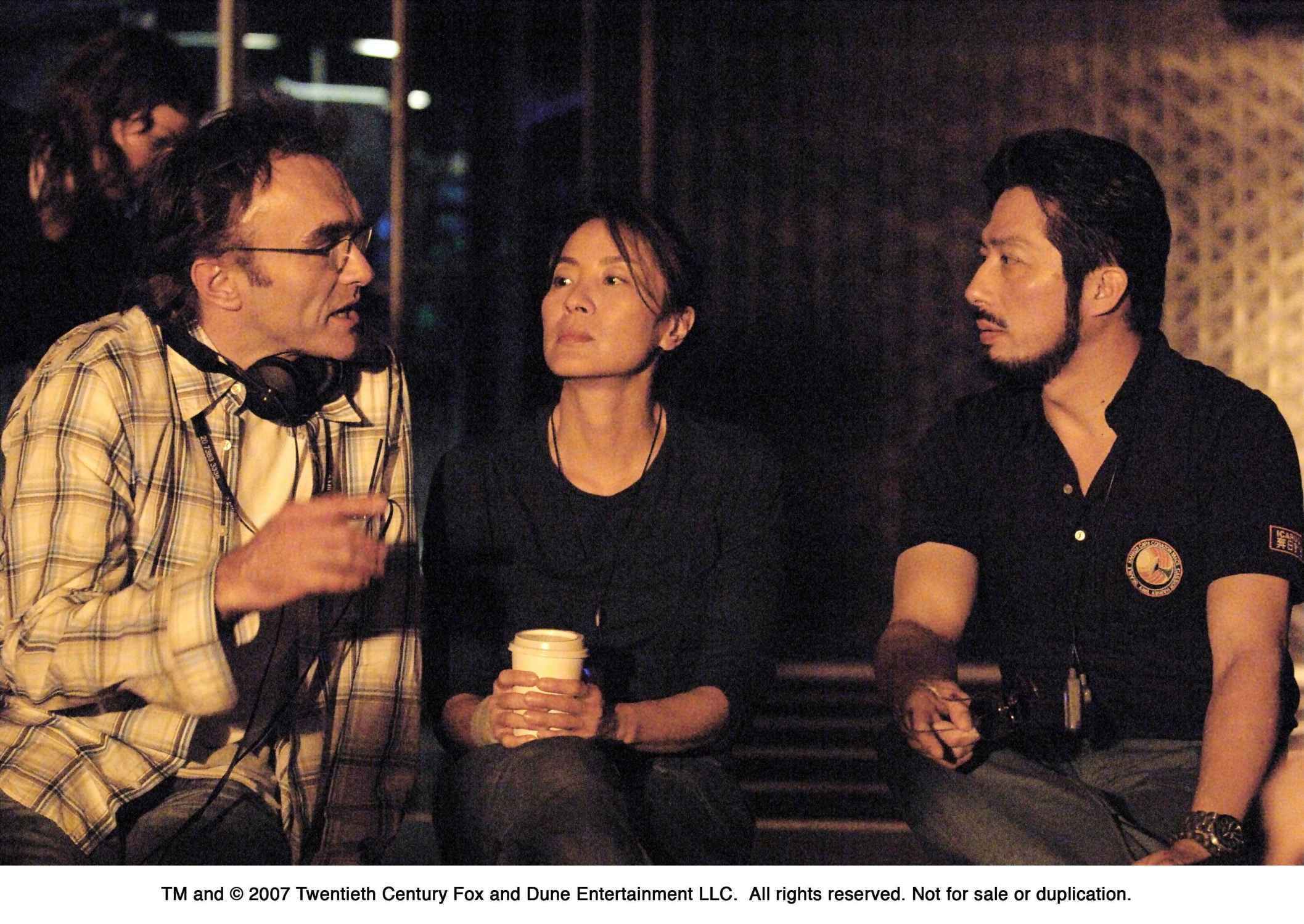 Description: A group of people sitting next to each other talking and drinking coffee together in a room with a wall.